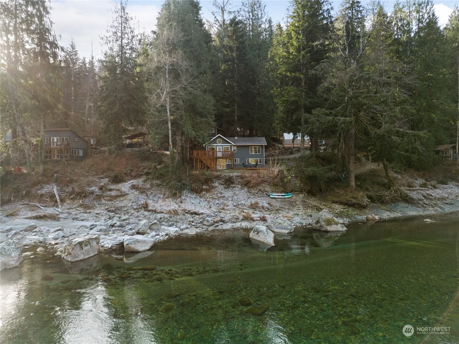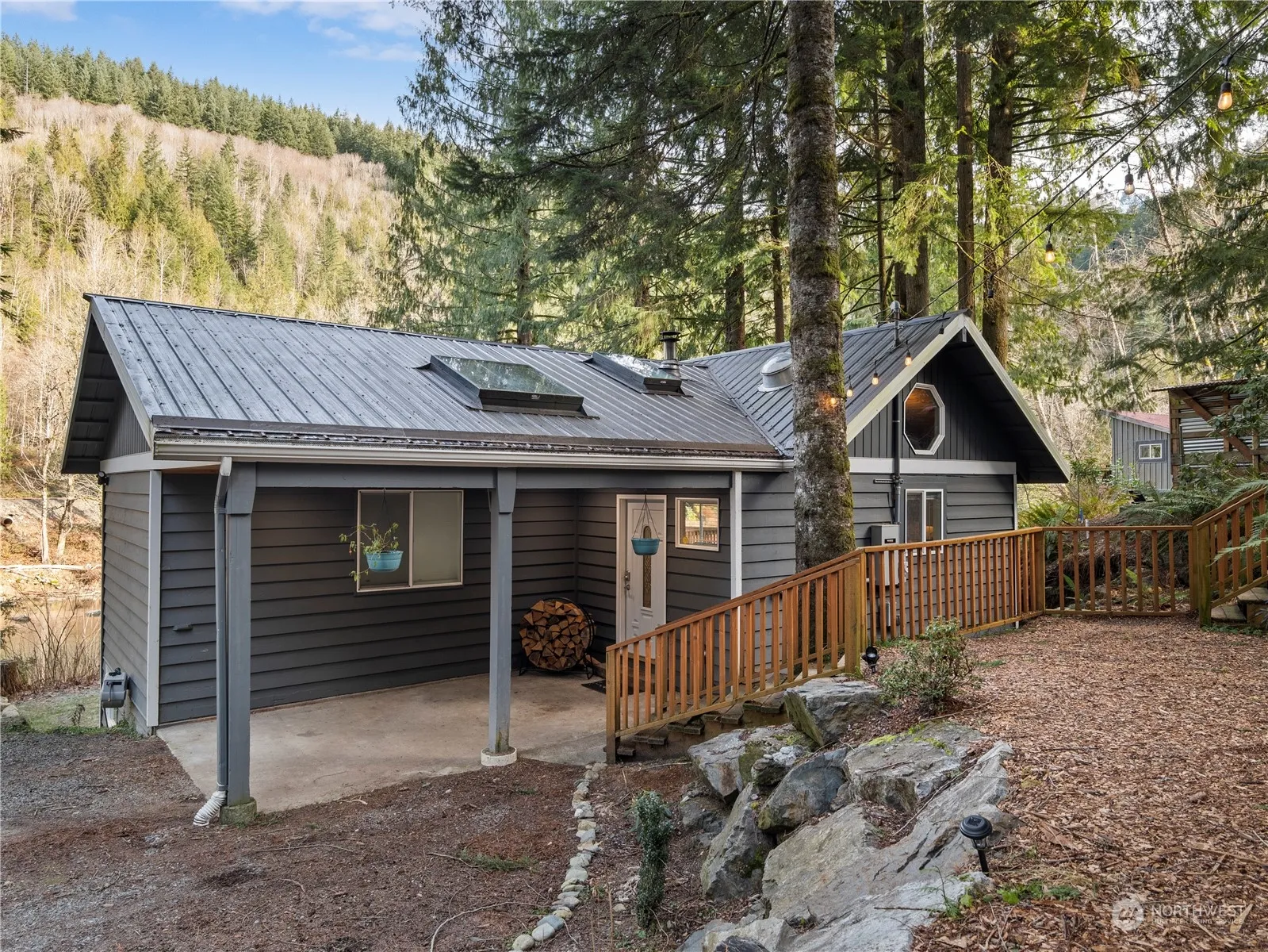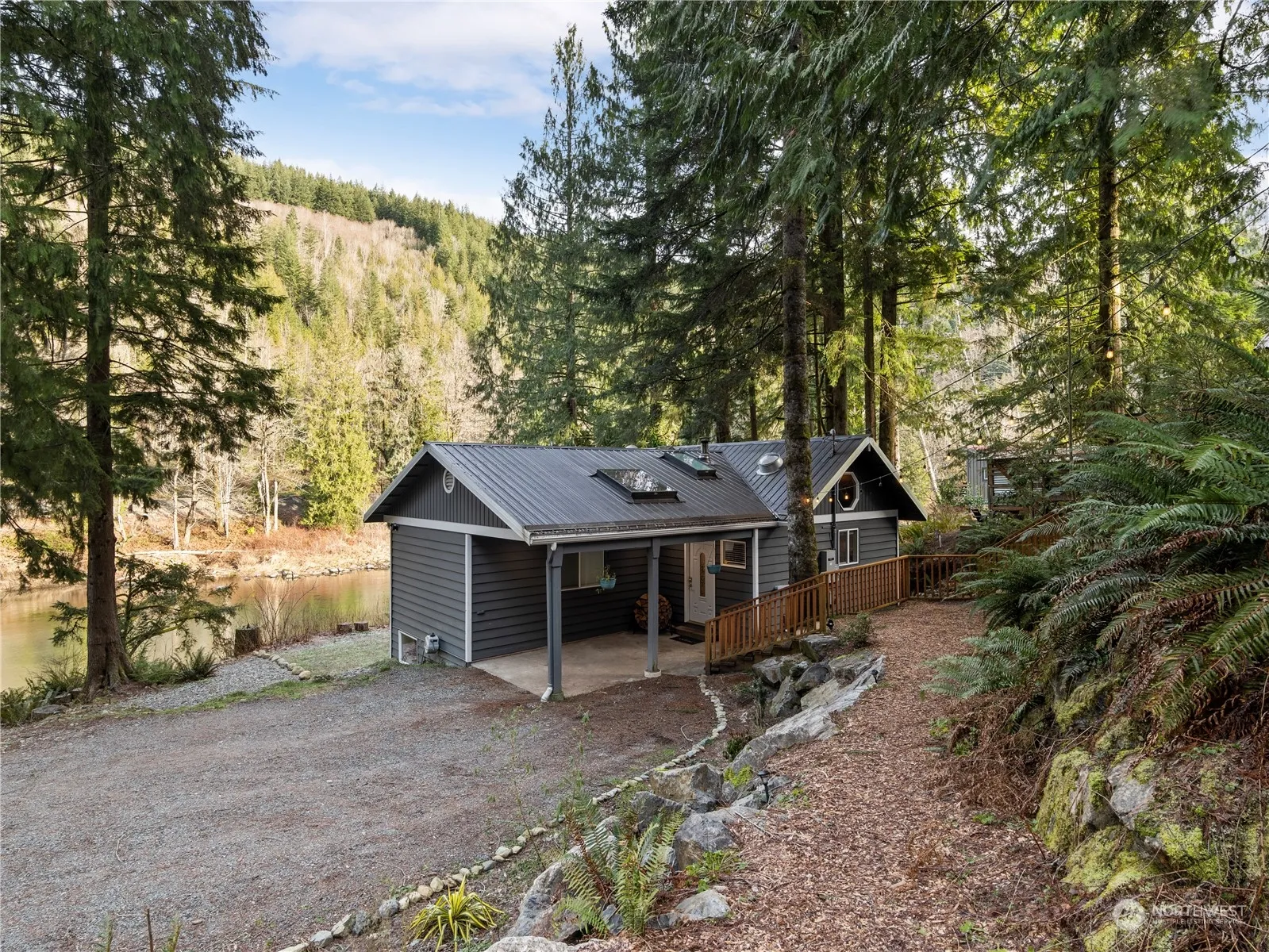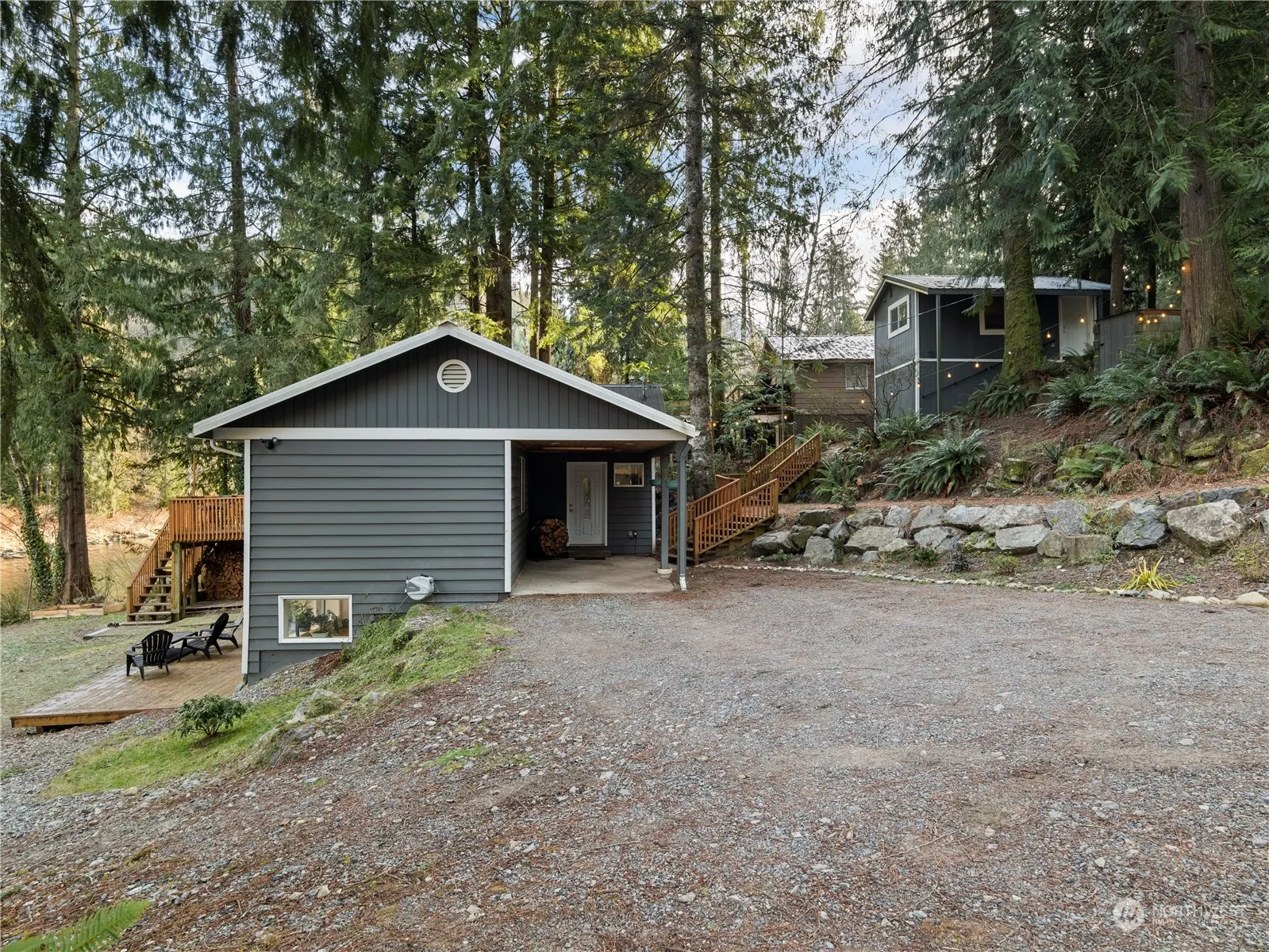 Rare opportunity to own a turnkey, tranquil oasis on the Skykomish River! Nestled on two large lots with expansive river frontage, this property is a MUST SEE! Launch kayaks from your backyard or simply enjoy the stunning river and mountain views from any room. A fully equipped 300 sq ft guesthouse offers space for hosting or rental income while the custom greenhouse is a gardener’s dream. This beautifully remodeled cabin features vaulted ceilings, a cozy wood stove, expansive windows and a 3-bedroom, 1.75 bath layout blending rustic charm with modern luxury. Don’t miss this extraordinary retreat!