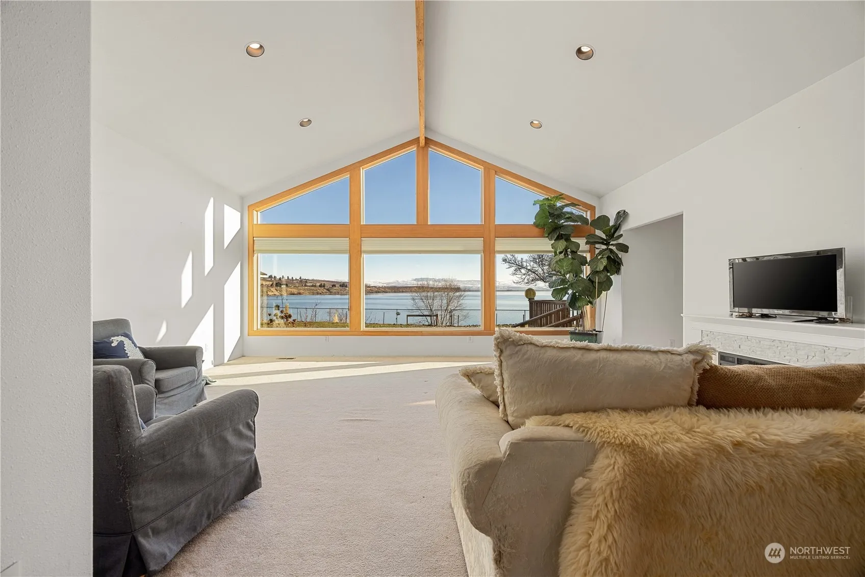 PUD Waterfront mixed with permittable STR zoning makes this Brewster Bay Beach House an epic primary home/getaway retreat option, or passive income VRBO investment. 410 Lakeview Way offers infinite-style east-facing views from inside and out, w/ a soft approach to the shorelines where one can access the PUD walking trails along the bay and river for swimming + fishing. This rambler offers 3B/2B, 2,130SF with a 2-car garage + a breezeway to the 576SF detached shop. Outside offers underground sprinkler system w/ a fully fenced yard, a concrete pad w/ RV hookup. Home is conveniently located on a private block, and minutes away from Lone Point Cellars, and less than 30 minutes from Gamble Sands. Home + PUD WF lot offers an unmatchable setting.