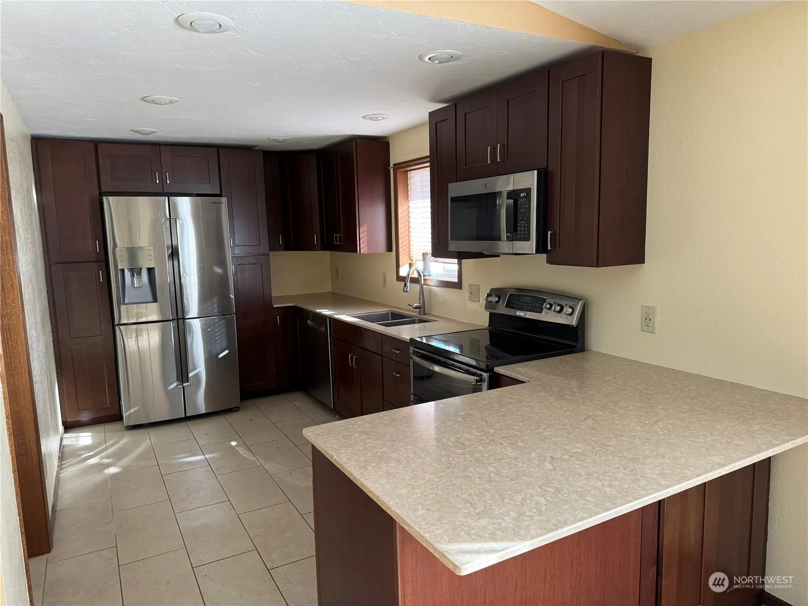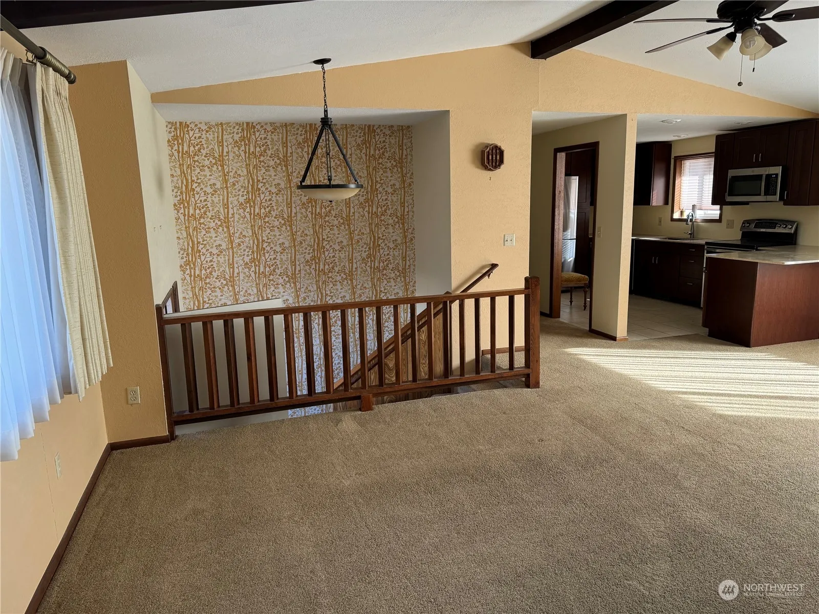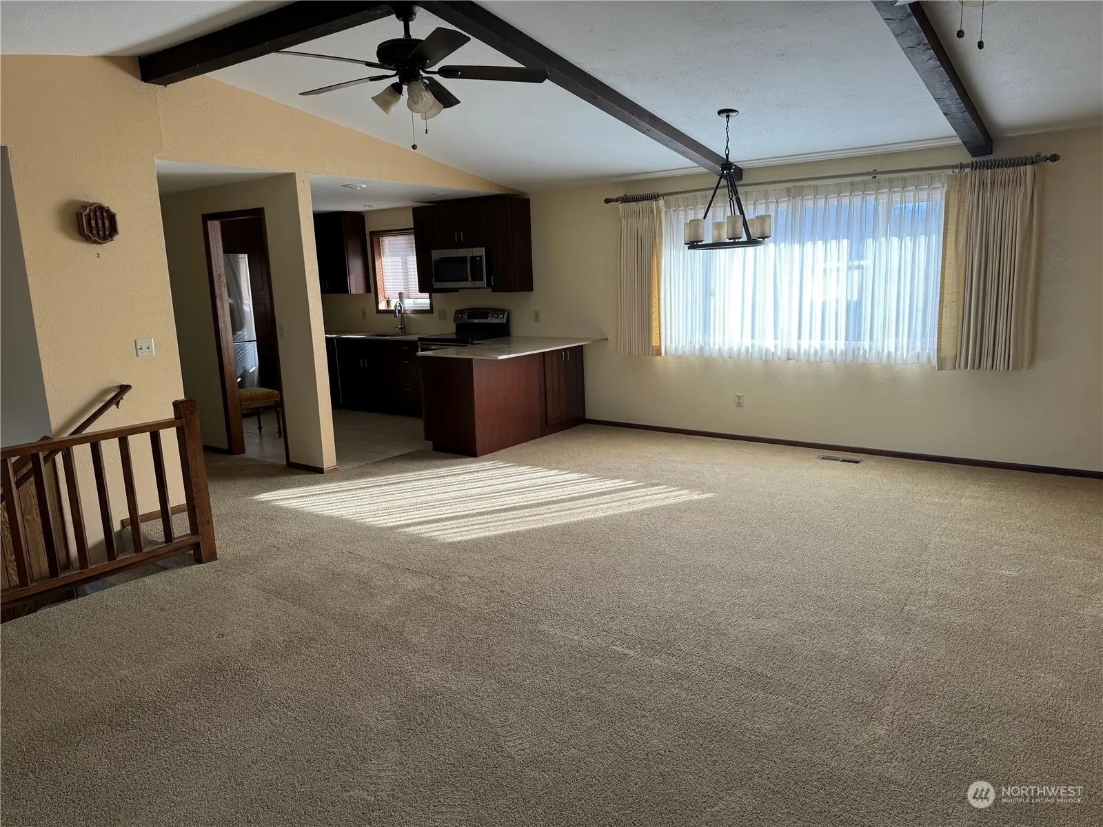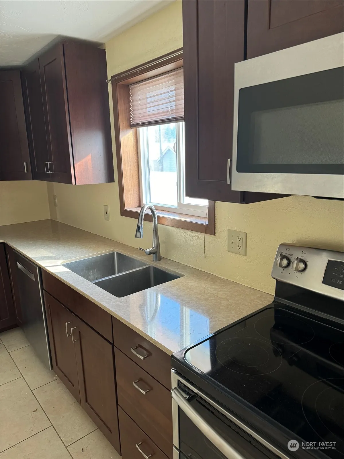 Tucked back on a quiet street, sits this well maintained 3 bed/ 2 bath home near schools, hospital, and park. Open concept floor plan with large living room/dining room area with the kitchen overlooking both. Main floor offers 1 bedroom and updated shower/bath while lower level offers 2 bedrooms, newly renovated bathroom, and large family room/den area with wood stove. New floor in utility room as well. Spacious attached garage and large covered parking in back with alley access. Fenced, landscaped yard in back with underground sprinklers both back and front yard. Ample parking for RV and or recreational vehicles. Covered patio area in backyard that would be great for relaxing and or entertaining! Clean, charming home that is a must see!