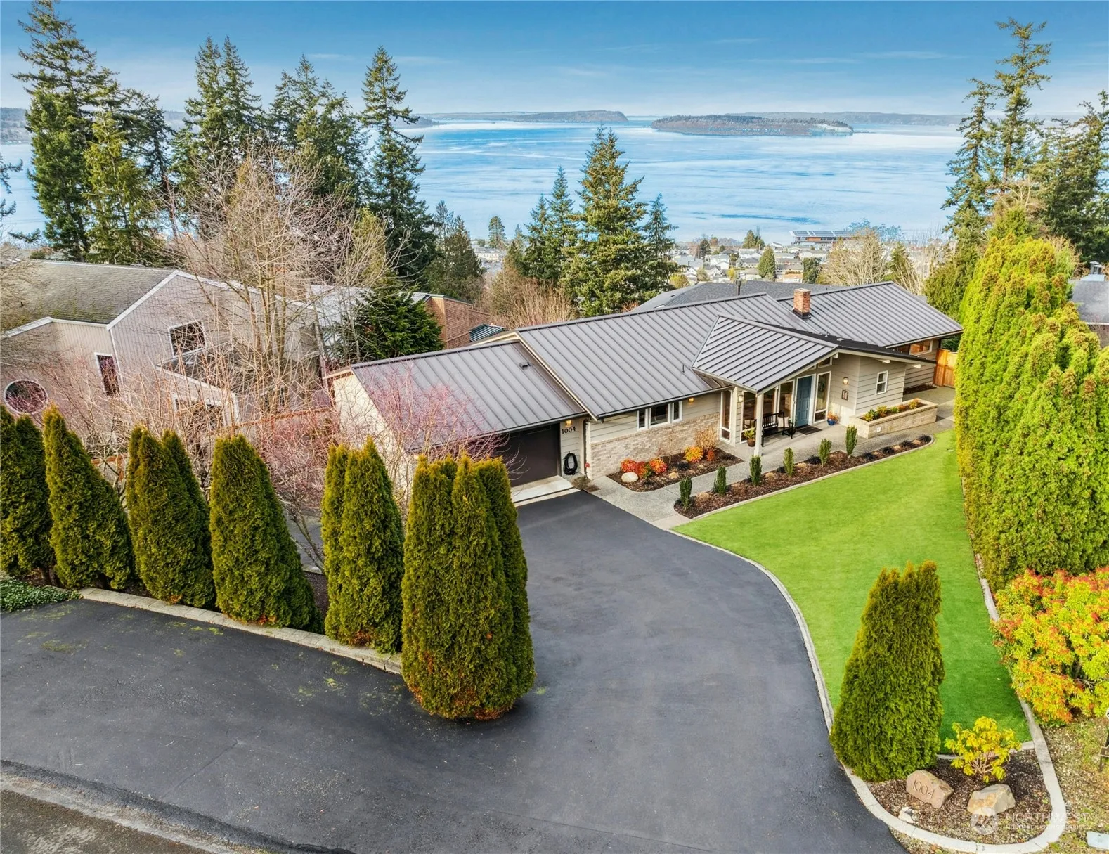 Perched high above Old Town Mukilteo, this beautifully updated home offers sweeping views of Puget Sound, mountains and nearby islands with breathtaking sunsets year-round. Open-concept main level features soaring ceilings, remodeled kitchen with elegant cabinetry and a wall of windows that opens to an entertainment-sized deck. Main-level primary suite includes a large walk-in closet, sitting area and an updated bathroom. Additional highlights include turf, AC, metal roof, updated deck, laundry on main, fenced yard, RV/Boat parking and many other recent updates. With easy access to beaches, parks, trails, shopping and dining, this exceptional home offers the perfect blend of timeless style, modern comfort and unparalleled Northwest views!