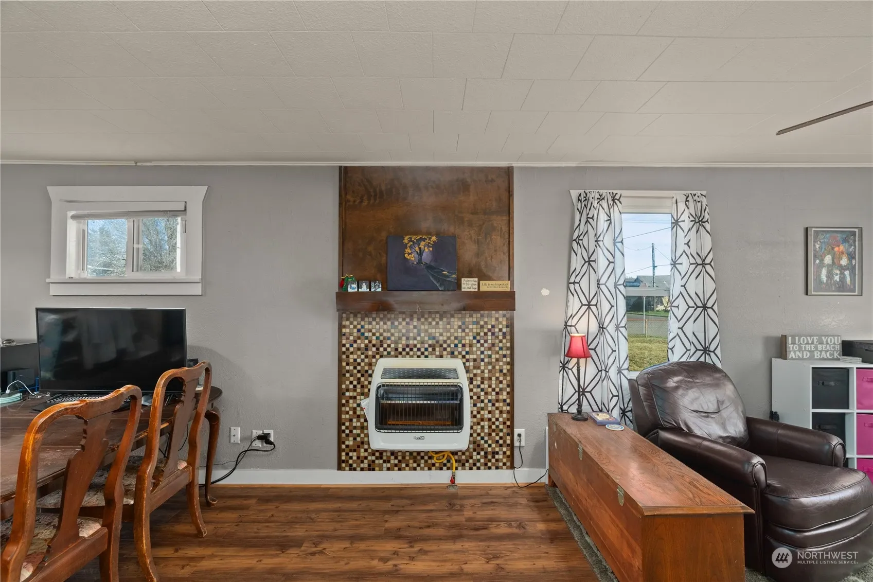 Classic 1928 solid built Hoquiam home on a huge corner lot! Primary bedroom on main floor with private bathroom featuring a claw foot tub. Additional upstairs bedroom with lots of built-ins and flex space that could easily work as another bedroom/office. Large shared bathroom with floor to ceiling tiled shower & stacked laundry. 16×20 finished outbuilding was built in 2009 with electricity & loft. Spacious living room flows into dining space and has lots of windows and a natural gas heater to keep it cozy. Kitchen has gas range & garden window over the sink. House underwent a complete overhaul in the late 90’s including updated electrical, foundation, plumbing, double paned vinyl windows, siding. New roof was put on in 2022. Sold As-Is.