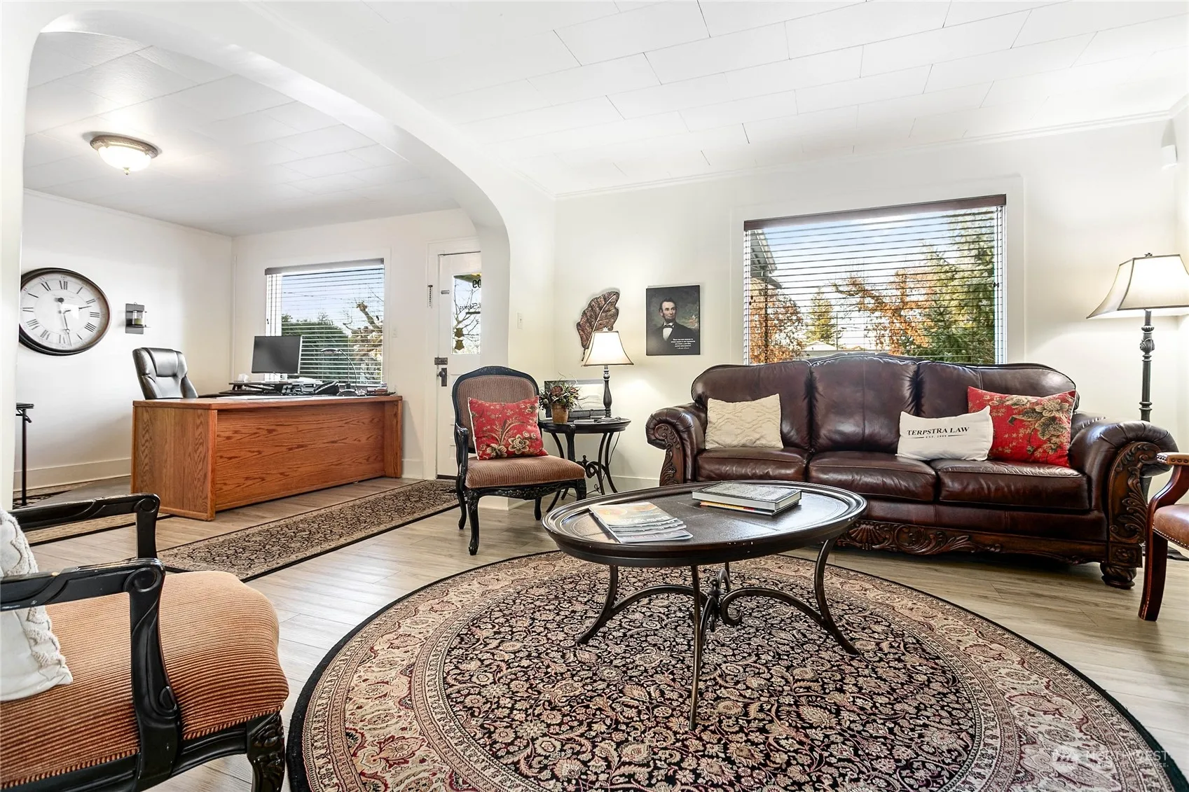 Great office building and upside of redevelopment potential! Prime location in the heart of Lynden, featuring 1,400 sq ft of office space and an addl 1,100 sq ft of unfinished but usable basement, reception area w/ waiting room, conference room, three private offices and a full kitchen. Exceptionally maintained bldg w/ updated plumbing and electrical systems. The layout provides the opportunity for subleasing thanks to the separate basement entry. The large lot gives the opportunity to redevelop w/ a possible mixed use building w/ office on the main level and multifamily above or preserve the office building and add a duplex or condos to the south. Amazing 2nd story views of Mt. Baker and Nooksack Valley and downtown Lynden to the south.