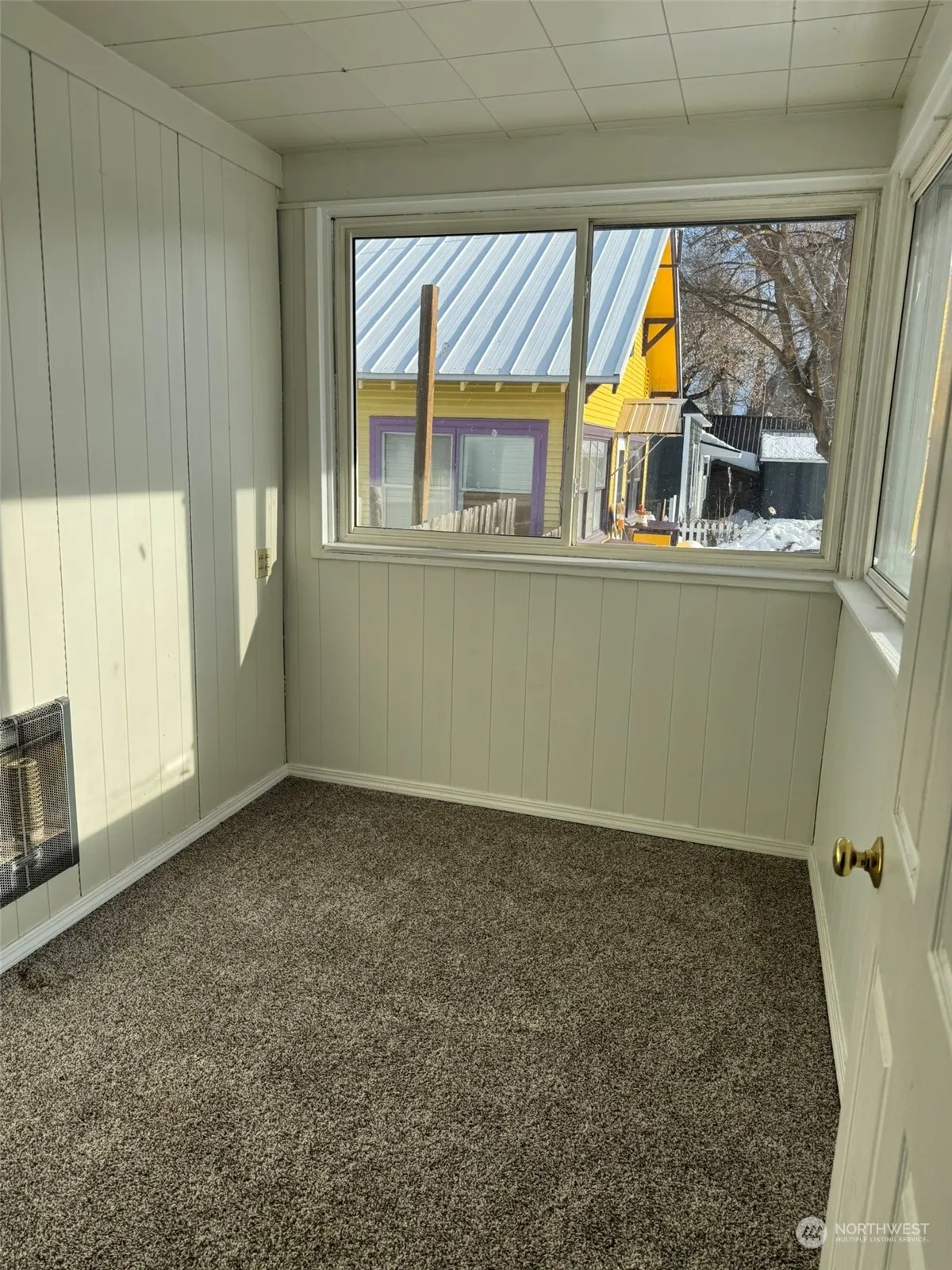 Adorable Bungalow ready for new owners. This home on a corner lot has possibilities! Open floor plan in the main living area. Three bedrooms and 1 bath. Two additional rooms on the main floor for an office and sunroom perhaps. The woodstove will keep the chills away. Updates include: Newer vinyl windows, fresh paint, carpet and plank flooring, electrical panel and more. Two stairways to the basement-one with direct outside access. Unfinished spaces downstairs would make a great family room or add an egress window and add more bedrooms. The detached garage features a metal roof and large covered area for firewood storage. Firewood for the first year cut and stacked is included in the sale.