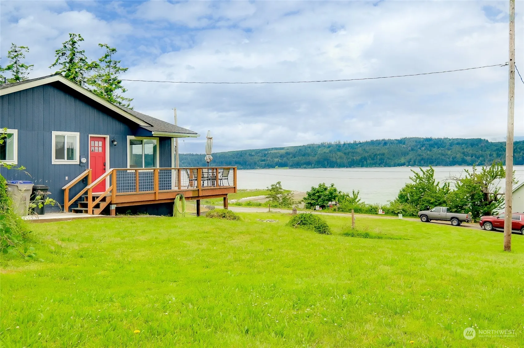 Unique Opportunity for waterfront home ownership! Set on a tranquil .76 acres gently sloping west with stunning views of Hood Canal, Olympic Mountains and endless sunsets. The existing house (Offered at $600k) is sited on .49 acre stretching across the beach into the waters of Hood Canal. Then the “Wild Card”, another .27 acre lot just begging to be built on (Offered at $125k). This property may best serve a multi-generational plan. This site in Silverdale is just minutes to town. Located at the end of the road adjacent to Bangor Base. Home is a rambler (1 level) w/a tall walk-in under, and could be converted to a full-on basement. This 3-bed home is just waiting for your creative expansion plans. Both parcels as a package is $699,000.