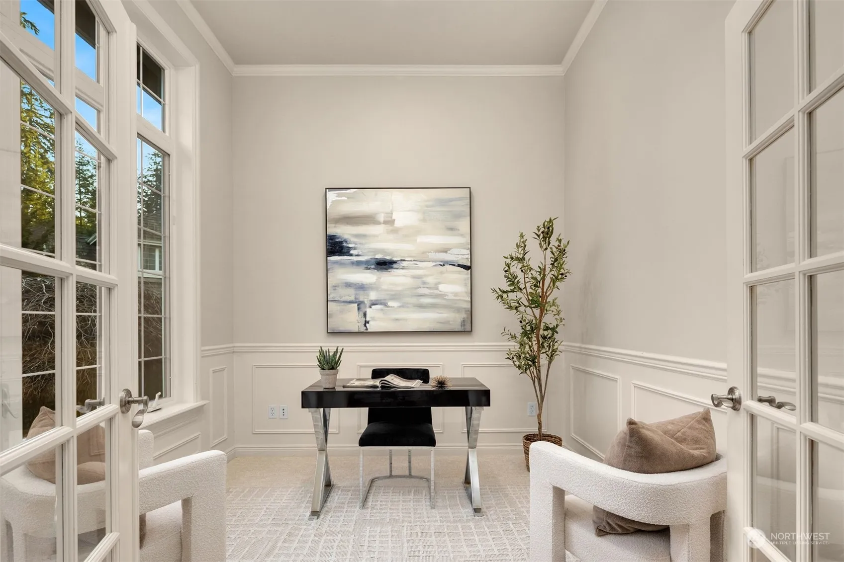 Discover this stunning River Crossing home crafted by the renowned John Buchan Homes. Embodying elegance, sophistication and practicality. Boasting a rare 4-car garage and a generously sized driveway, providing ample parking and storage space. Spanning across 3,200 square feet are 5 bedrooms, a dedicated office, and two inviting living areas. The kitchen is a chef’s delight, complete with a grand Thermador gas range, perfect for hosting gatherings. Enjoy soaring ceilings, fresh paint and new carpet throughout. Retreat to the spacious primary suite with vaulted ceilings, a 5-piece bath, and dual walk-in closets. Relax on the back deck overlooking the large backyard. Conveniently located within walking distance to Mill Creek Town Center.
