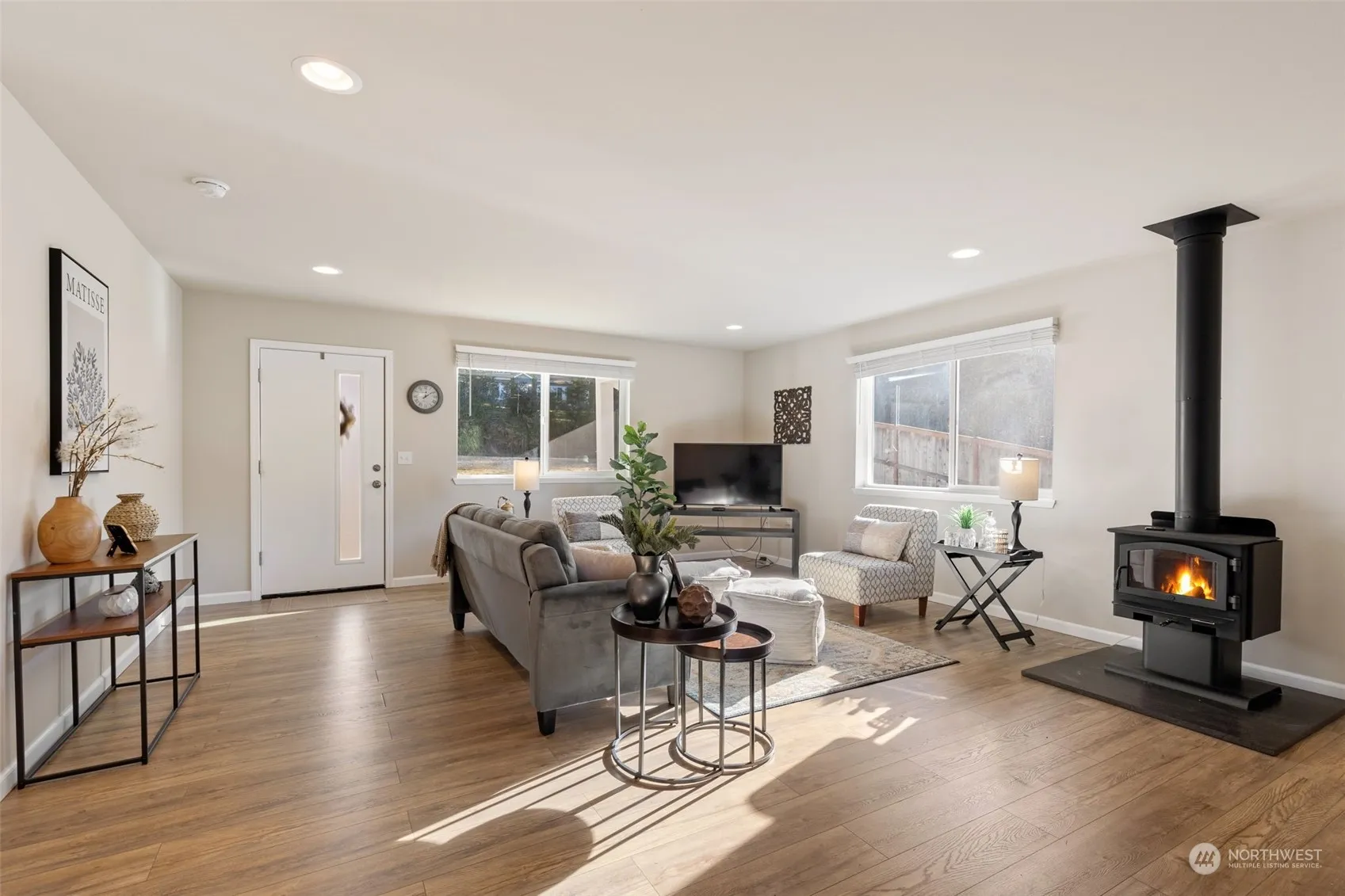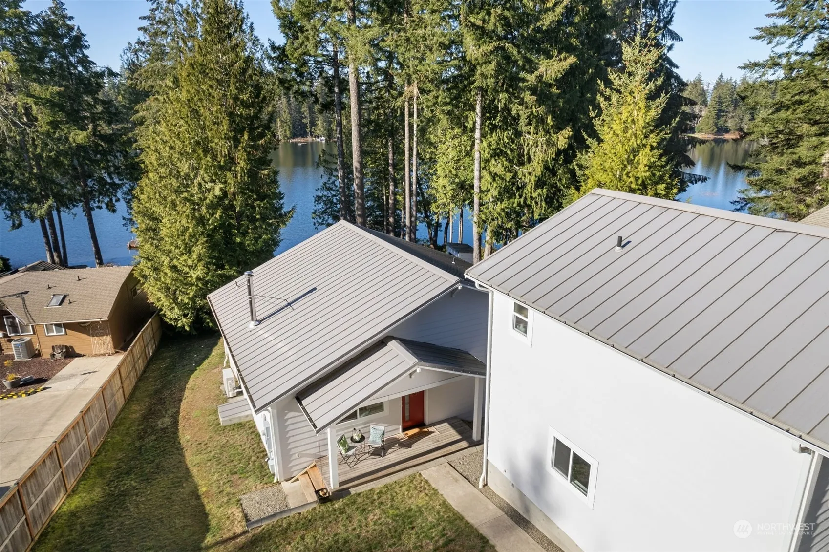 Summer is just around the corner—time to enjoy the lakefront life! This nearly-new custom home boasts designer touches, SS appliances, & quartz counters in an open layout with breathtaking lake views. Ideal for full/part-time living or Airbnb! Live in the 2 bed/2 bath main house and rent the 1 bed/1 bath DADU to offset costs, or use it as a perfect MIL suite. Unwind on the west-facing deck with a drink in hand and enjoy stunning sunsets. With 75′ of rare no-bank waterfront on a 1/2 acre, enjoy easy kayaking, swimming, & year-round fishing in the pristine lake. Access private Hood Canal beach for clams, oysters, & beachcombing! Quiet & peaceful, yet just minutes from all conveniences.