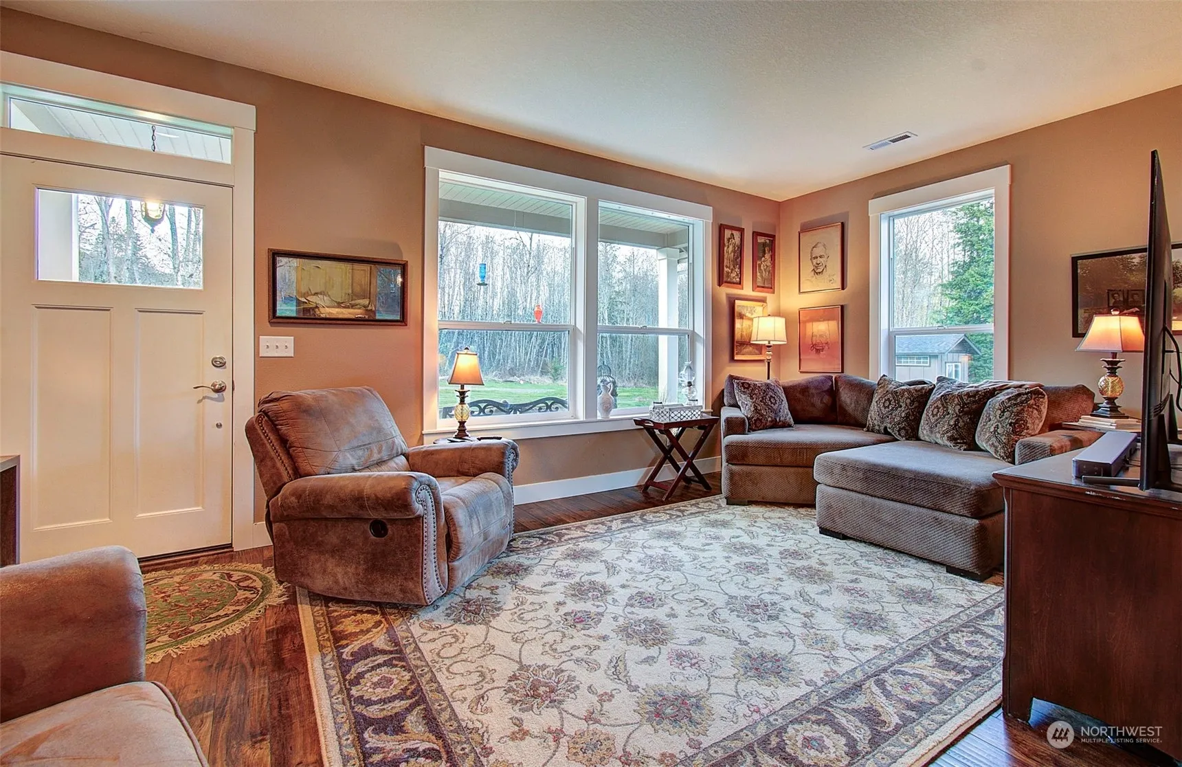 Discover Your Dream Country Retreat! This 2017 estate on 5.2 acres, blends modern luxury with rustic charm. Featuring durable Hardie Plank siding and 9-foot ceilings. The gourmet kitchen features top-tier stainless steel appliances and elegant granite countertops. Ample storage from Northwood cabinetry and a cozy living area with a wood stove. Chic bathrooms, including a spa-like main bath and a private primary suite with an opulent walk-in shower. A stunning 16×24 sunroom, perfect for gatherings or quiet enjoyment. The property includes an RV pad and space for a future garage, offering flexibility for development possibilities. Experience this exceptional retreat firsthand. Schedule a tour today.