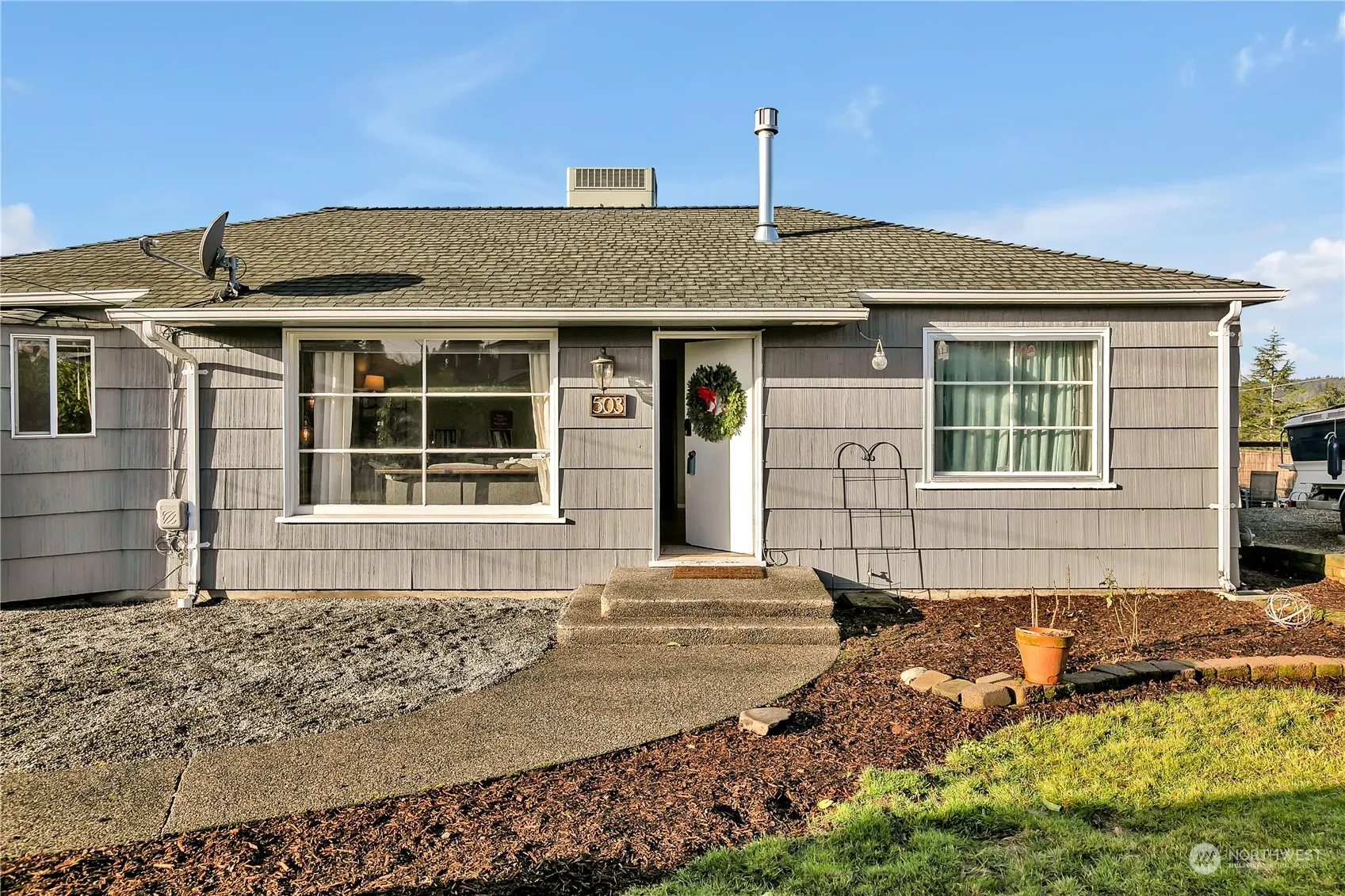 VETERANS–4.05% assumable VA loan saves you approx. $963.00 a month compared to the current 7% rate–WOW! (Vets only). Current pymt: $3,074.99 PITI. This remodeled home offers the perfect blend of country charm & modern amenities, conveniently close to the city. Nestled on a corner lot, it sits elevated w/sweeping views of the city’s nightlights, offering a stunning backdrop for evening sunsets & occasional fireworks displays. Hardwood flooring throughout, bright, fully equipped kitchen, large, expansive deck that extends the entire length of the home– perfect for entertaining! New heat pump w/A/C too! Spacious 520 sq. ft. garage, room for 2 vehicles & other toys! Plenty of parking for an RV & boat! Finished basement for more storage or ?