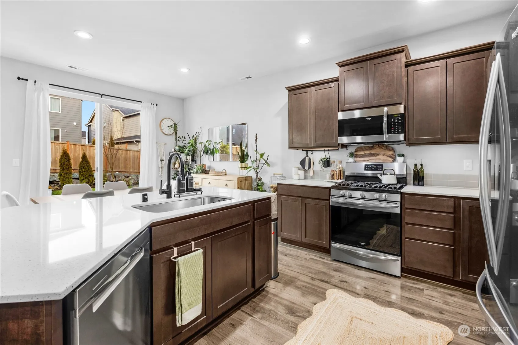 This 2020 DR Horton build has been pre-inspected & is clean! Better than new construction. The main level boasts a great room concept. The kitchen includes quartz countertops, shaker cabinets, large island, pantry & matching SS appliances. Snuggle up in the living room w/the cozy gas fireplace or step into your backyard oasis. Fully fenced yard includes custom landscaping w/drip irrigation, patio w/pavers, deck w/string lighting, hot tub & garden shed. Upstairs you will find the primary suite along w/2 guest bedrooms, full guest bath, bonus room & laundry. The primary suite includes a 5-piece en suite bath & walk in closet. 3-car garage w/large driveway & street parking. Walking distance to park, Cedarhome Elem., Cedarhome Coffee & Market.