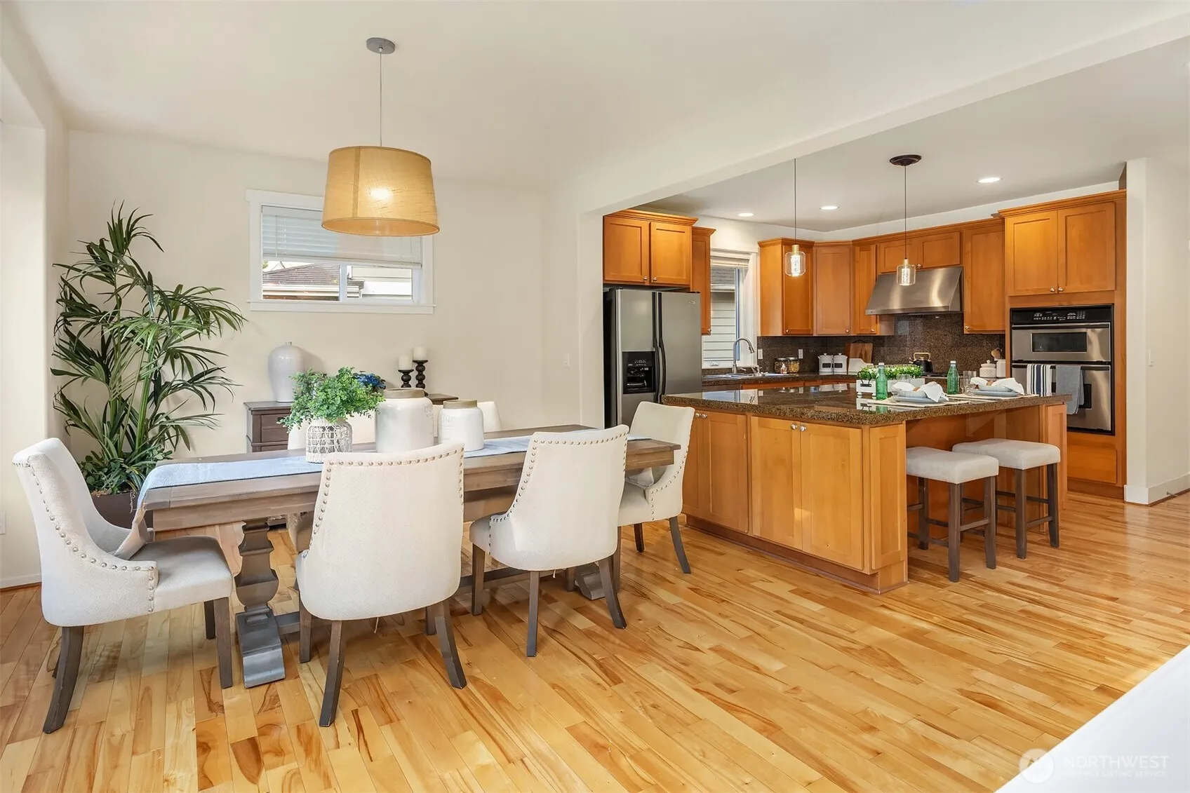 Impeccable Burnstead resale offers rare privacy and a spacious backyard-yet just steps from the energy of Issaquah Highlands. Set in a peaceful community, 3 BED+DEN+LOFT, it welcomes with a grand vaulted entry, French doors to the den, and rich hardwoods. The chef’s kitchen features granite counters/backsplash, an island, stainless appliances, and a gas range with hood. The great room centers on a cultured-stone gas fireplace. Double doors open to a serene primary suite with cathedral ceiling, walk-in closets, and a 5-piece tiled bath. Upstairs, enjoy mountain views. Outside: partial greenbelt outlook, organic veggie beds, and fruit trees. Minutes to Grand Ridge Plaza, parks, and trails-live serene, stay connected!