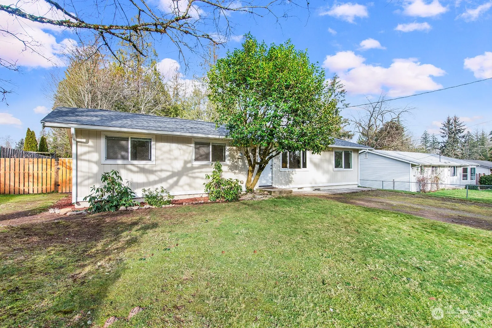 Sweet Mid-Century home located in the heart of Edgewood. This three bedroom one bath home offers coveted one level living. Enjoy entertaining in your large living room, which adjoins the updated open kitchen with breakfast bar & dining room. Truly the heart of the home. Many updates include: new paint, light fixtures, new baseboard heaters, newer windows, newer kitchen cabinets, a brand new roof & gutters installed several weeks ago. Remodeled spa like bath with soaking tub & ceramic tile floor. Separate laundry closet in hallway. Large back yard oasis and patio offer great outdoor space for summer fun. Sited in a low traffic cul-de-sac. Close to schools, shopping and freeways. Welcome Home!