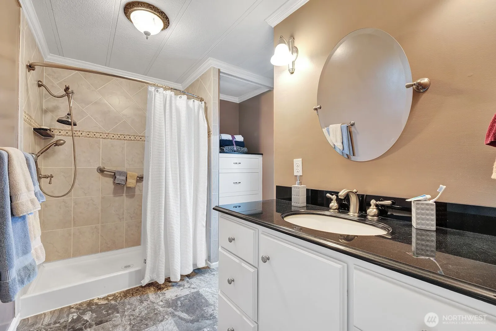 In this 55+ community you are “Buying a Simpler Lifestyle.”. The gated entry, private streets are some of what Heather Hills offers. This home is packed with Pizazz! Tasteful, designer accents include, crown molding, textured walls, plantation blinds, vinyl windows, laminate flooring, updated lighting, custom doors & more. The gourmet kitchen has upgraded counter tops with tile splash backs, custom cabinets / drawers for all your cooking needs. Storage & prep space galore! Primary suite at back of home. Ensuite has custom floor to ceiling tiled step in shower, built in cabinets for all bath linens, updated lighting & flooring. Entertainers’ delight patio w/ tex decking & tile. Close to all amenities. Easy commute location. A “must see”!