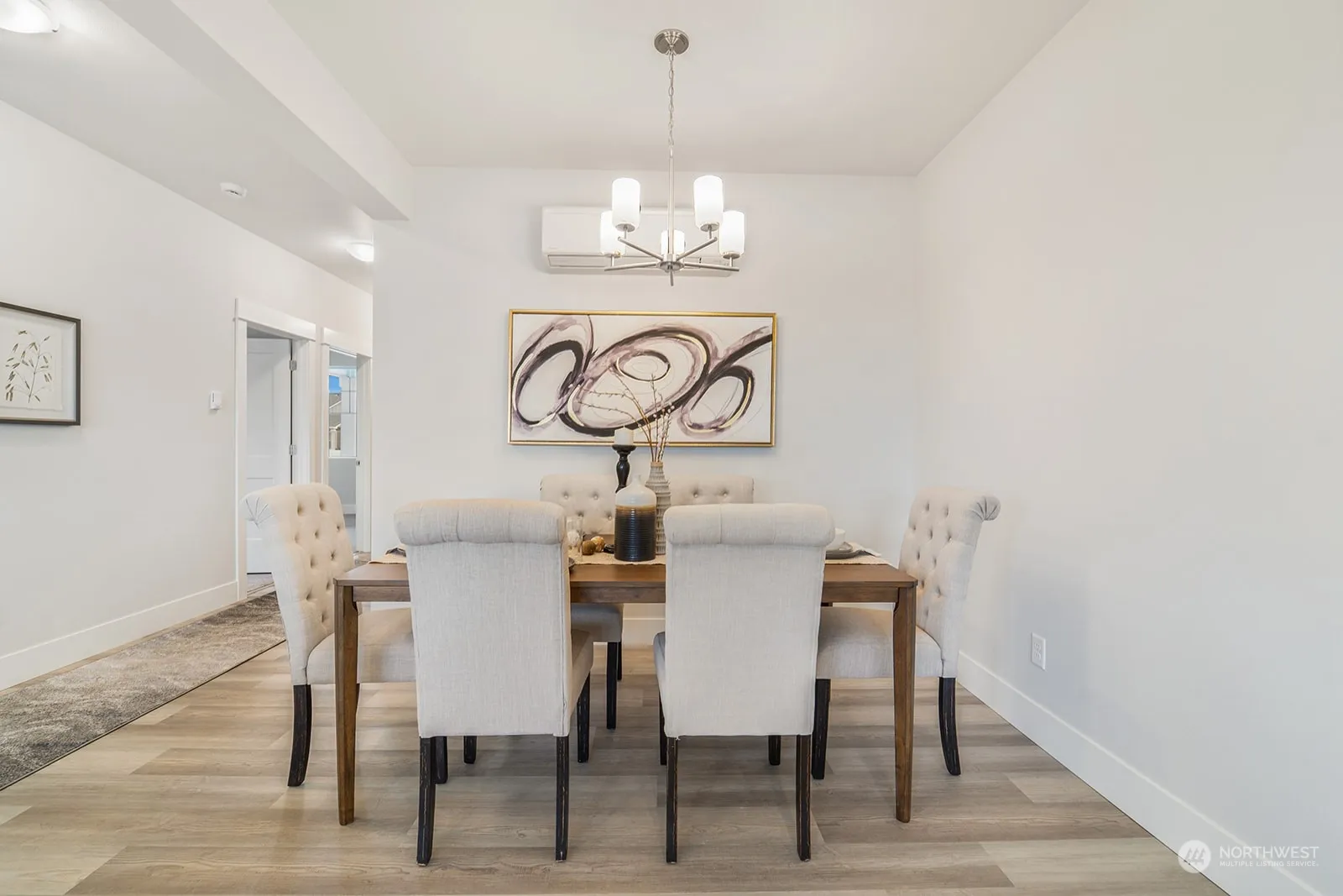 *MOVE IN READY!* Discover the Morrison by Azure Northwest Homes, where contemporary design meets practical living. This 3-bedroom, 2-bathroom home features a covered back patio, ideal for morning coffee. The great room’s lofty ceilings create an airy atmosphere, with natural light pouring through ample windows and a large double slider. The kitchen shines with exquisite countertops, an island, shaker cabinets, stainless steel appliances, and a party. A dedicated dining nook enhances entertaining. Outside, a professionally landscaped front yard highlights the home’s unique exterior. With a 3-car garage, the Morrison offers ample storage, blending style and functionality perfectly.
