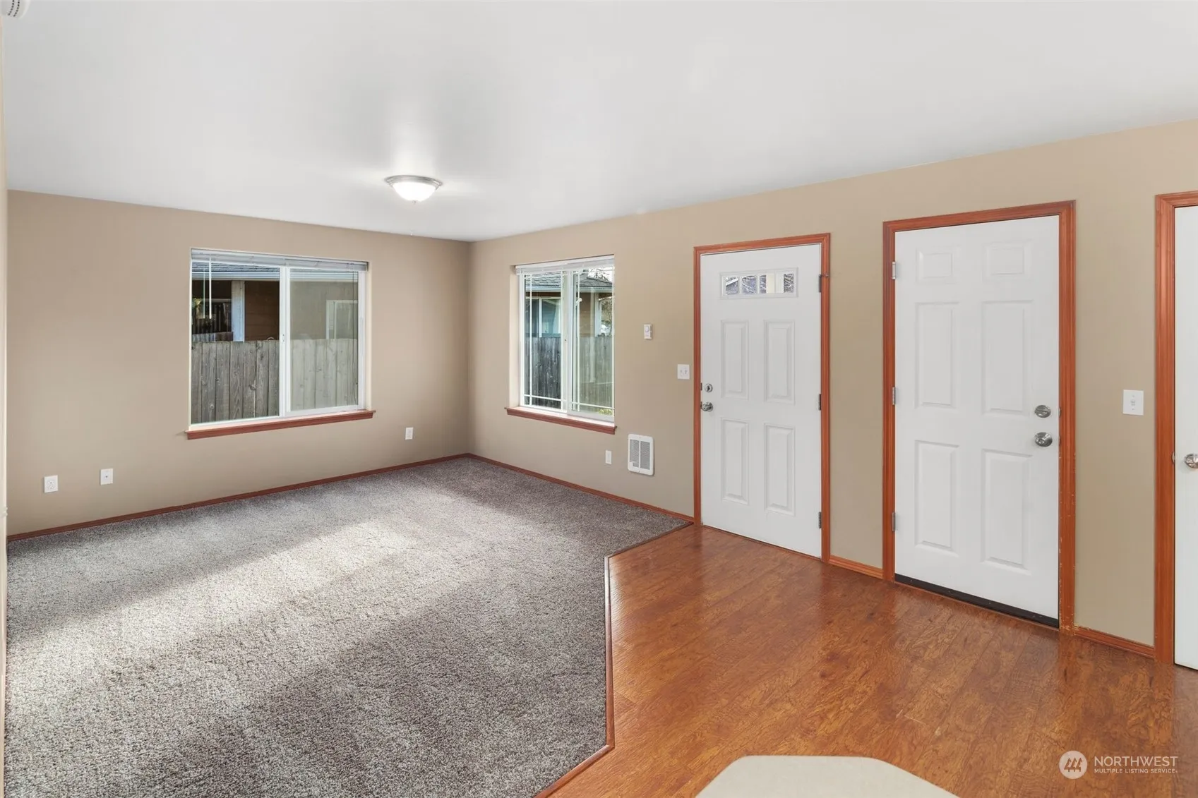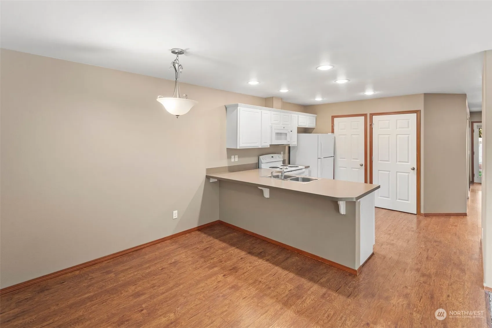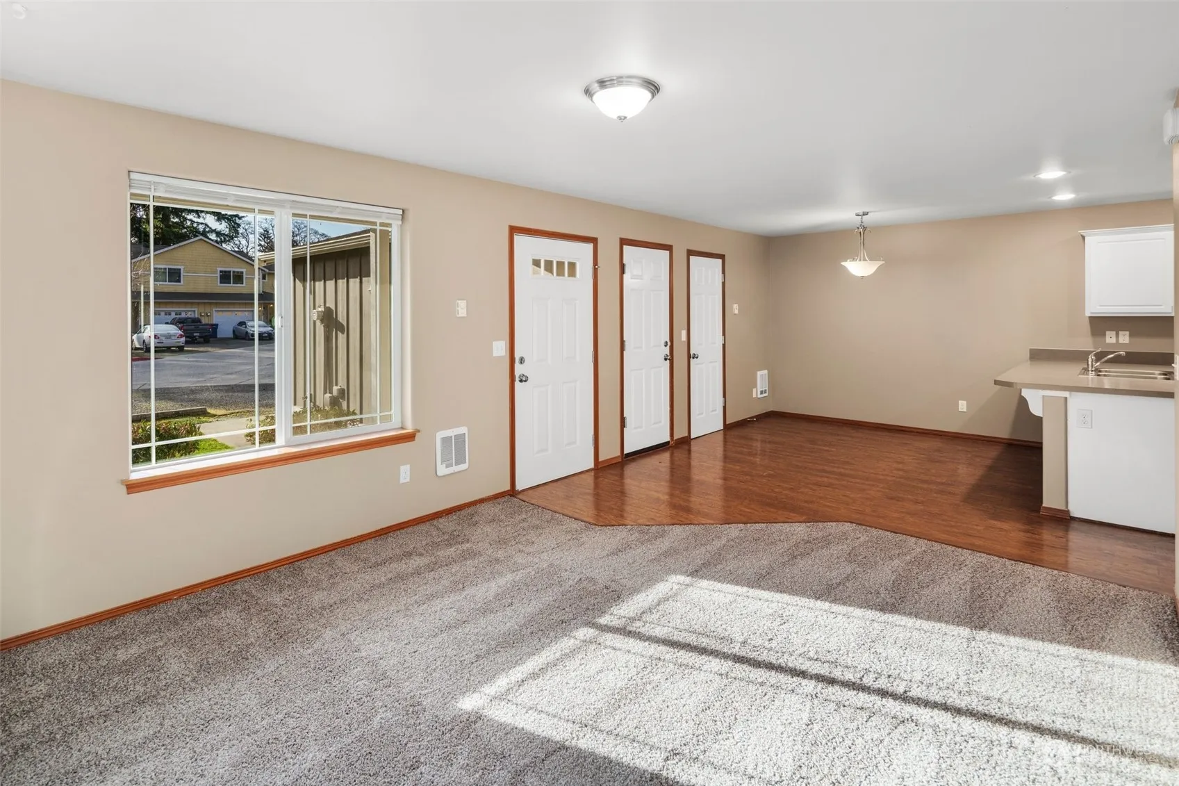Charming one-level, 3 bed/1.75 bath townhome by Landed Gentry located in the heart of Burlington. Freshly painted interior, new carpet, toilets and water heater. Open concept living boasts a separate dining area and cozy living room with an abundance of natural light. Kitchen features eating bar, ample counter space and storage w/full size pantry. Primary bedroom w/en suite. Step out back onto a quaint, covered deck and fenced backyard that backs up to a serene, wooded area. Single car garage and spacious driveway for additional parking. Great investment opportunity minutes away from schools, shopping, dining and local amenities.