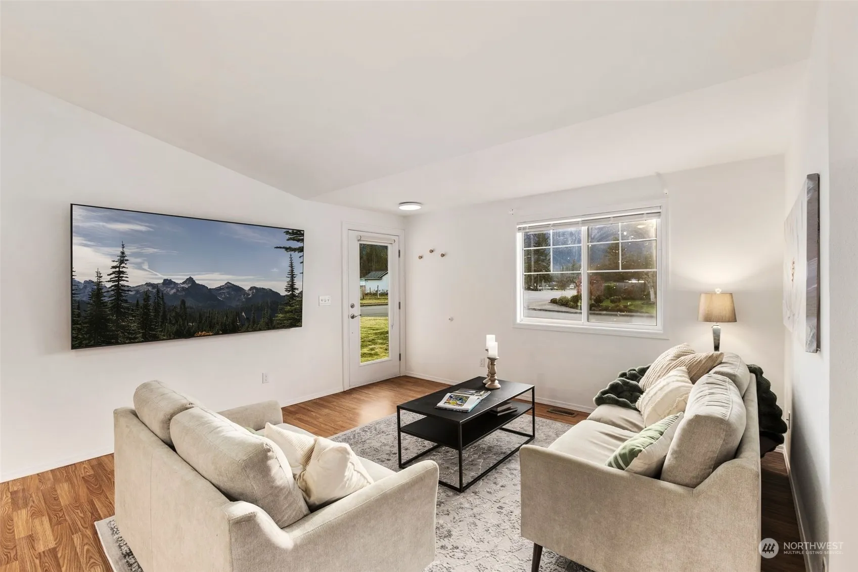 Move-in ready rambler on a large fenced corner lot in the heart of Gold Bar! Located at the foothills of the Cascades you’ll enjoy stunning mountain views right off your front porch & the best outdoor activities the PNW has to offer. Recently renovated with a brand new roof, floors, cabinets, appliances, paint, fixtures, hardware, and more. Vaulted ceilings throughout the living / kitchen / dining add a spacious & open concept feeling to the home. Renovated full bathroom off the living with a new vanity, fixtures, & hardware. Enjoy 3 private & roomy bedrooms. 35 minutes to the base of Stevens pass & 20 minutes to downtown Monroe. 2-car attached garage. Forced air heating & AC. 2 storage sheds. Room for RV parking. Don’t miss it!