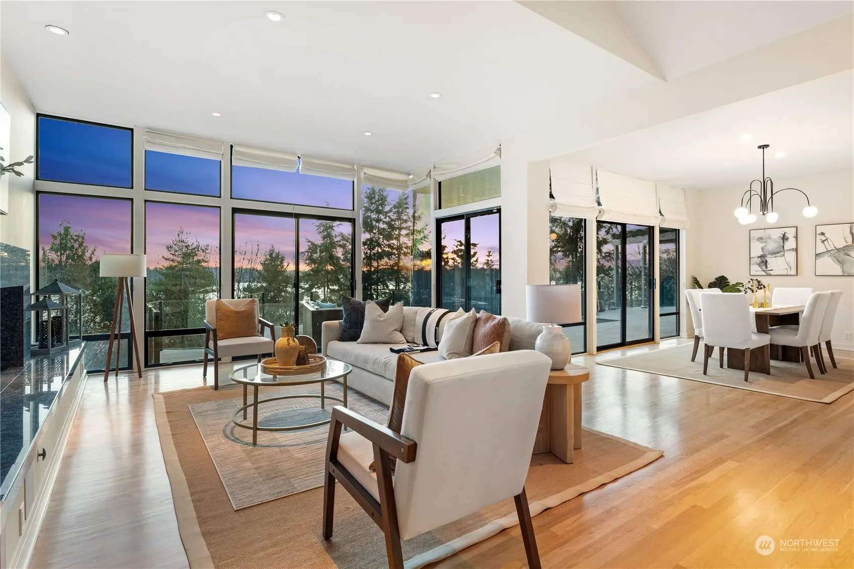 Rumor has it that Steve Miller found inspiration for “Fly Like an Eagle” while creating this extraordinary Mercer Island estate. Behind a private gated entrance, this architectural masterpiece offers sweeping Lake Washington views and effortless elegance. Full-length windows in the living, dining, and primary suite frame nature’s beauty, while the gourmet kitchen with butler’s pantry delivers refined functionality. Luxurious amenities include a solarium, indoor pool, sauna, hot tub, and a private apartment above the 4-car garage. Ideally located with easy access to Seattle and Bellevue, this home is a rare blend of tranquility and sophistication.
