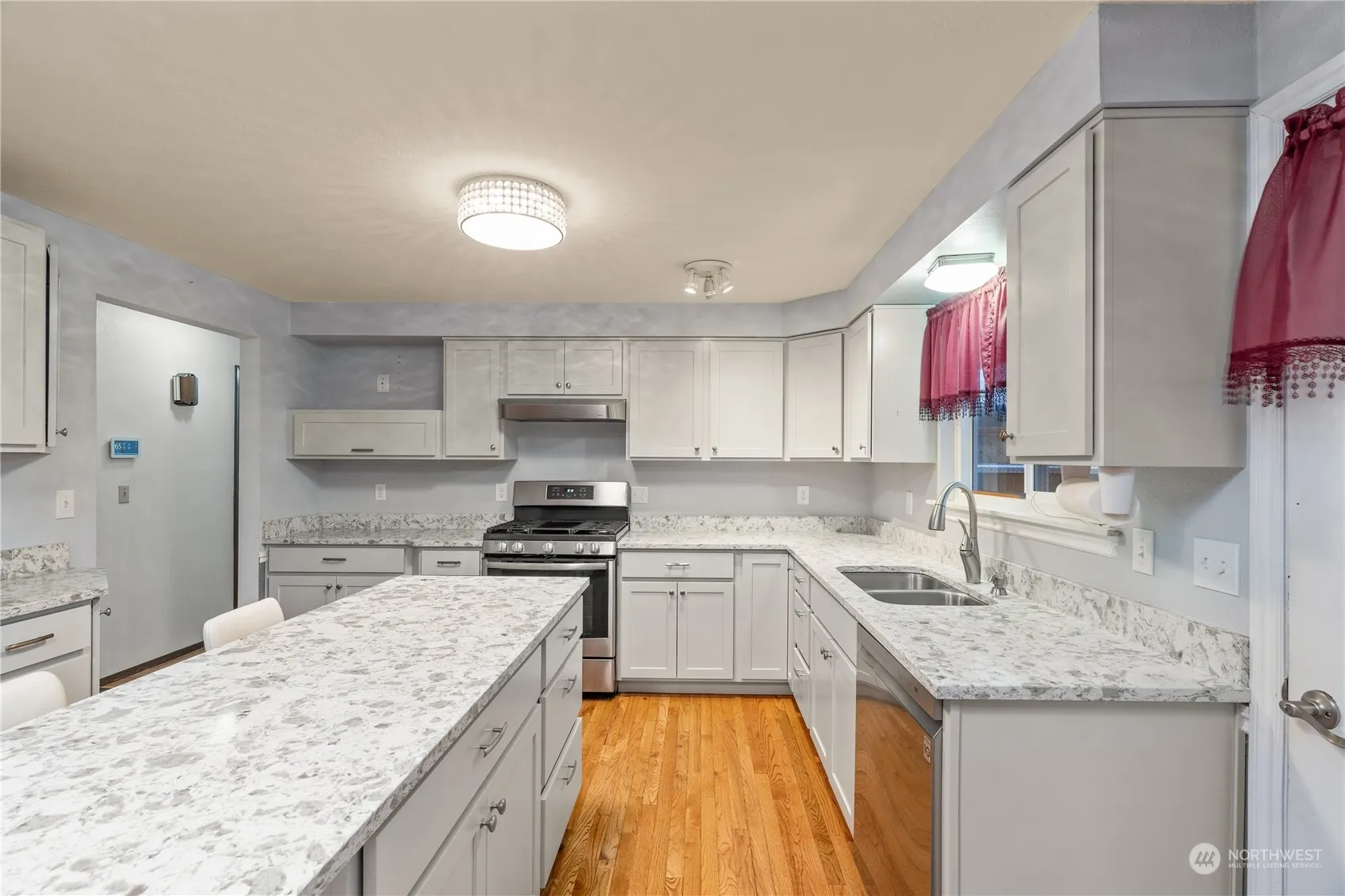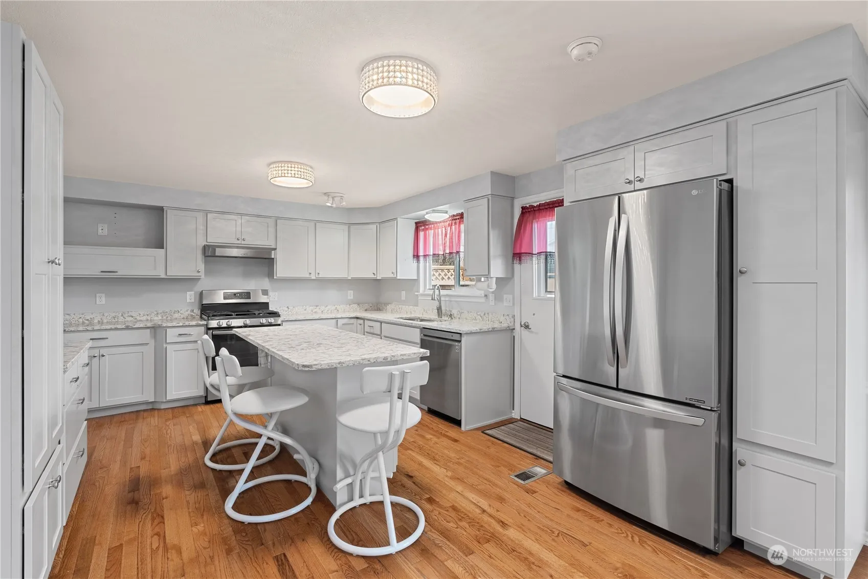 Discover this beautifully updated 3-bedroom, 2bath rambler situated on a generous corner lot. The 1590 sq foot home blends classic charm with modern upgrades. Recently remodeled kitchen has quartz countertops, SS appliances and lots of counter space. The dining room has hardwood floors and French doors, leading to a spacious deck that is perfect for entertaining. The office, with a closet, makes this a great flex room. Enjoy the cozy ambiance of the gas fireplace, while the heat pump-AC ensures year-round comfort. The property also features a greenhouse and multiple outbuildings w/electric, offering endless possibilities for gardening, storage, or hobbies. The 2 car garage and large driveway provides ample parking for cars and RVs.