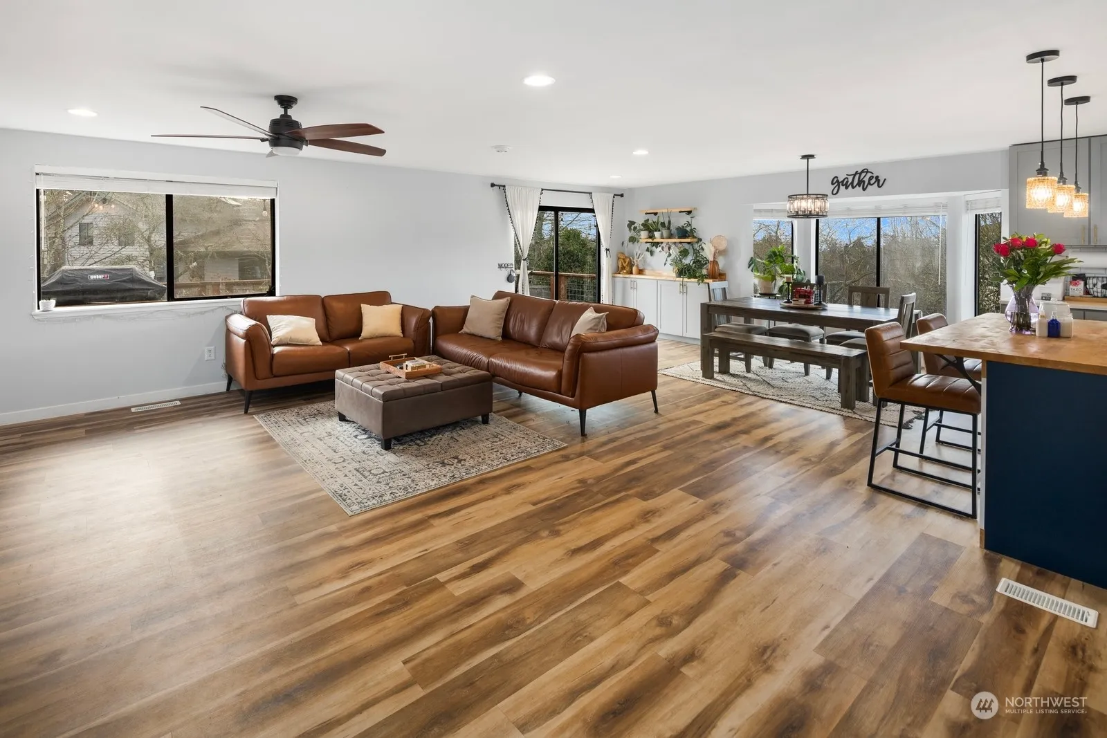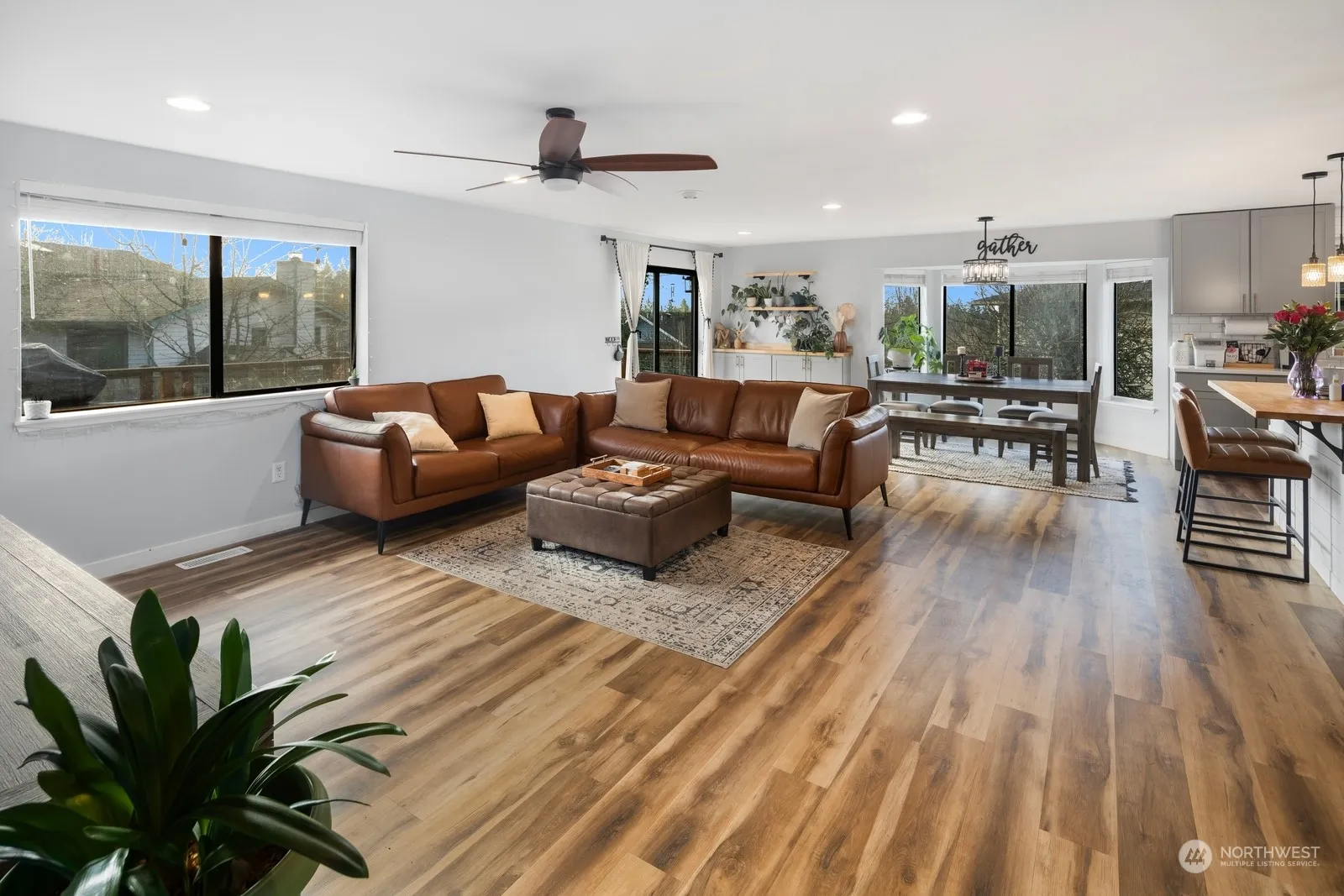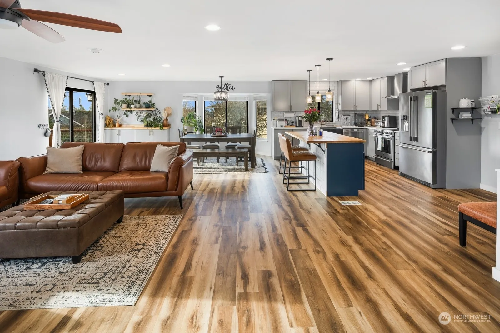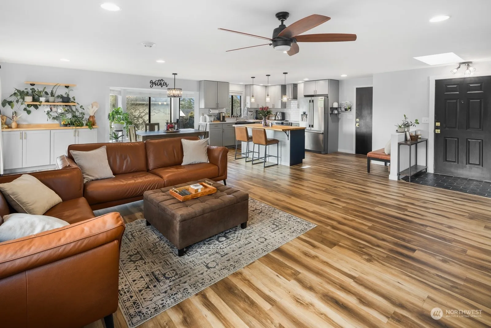 This immaculate rambler in Mukilteo offers the perfect blend of comfort and convenience. Nestled on a quiet cul-de-sac, it features a spacious lot with partial mountain views. Recent updates include stunning hardwood-style floors, a modern kitchen with quartz countertops, stainless appliances, and accent lighting, as well as beautifully remodeled bathrooms. Natural light pours in through skylights and bay windows, highlighting the home’s stylish designer touches. The fully fenced backyard boasts mature landscaping, RV/boat parking, and a large garage with storage and dog bath. Ideally located just minutes from Paine Field, shopping, the Mukilteo waterfront, and Sound Transit light rail, with top-rated Mukilteo Schools nearby! Welcome home.