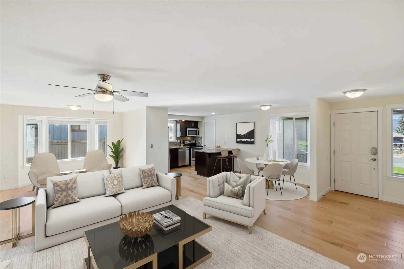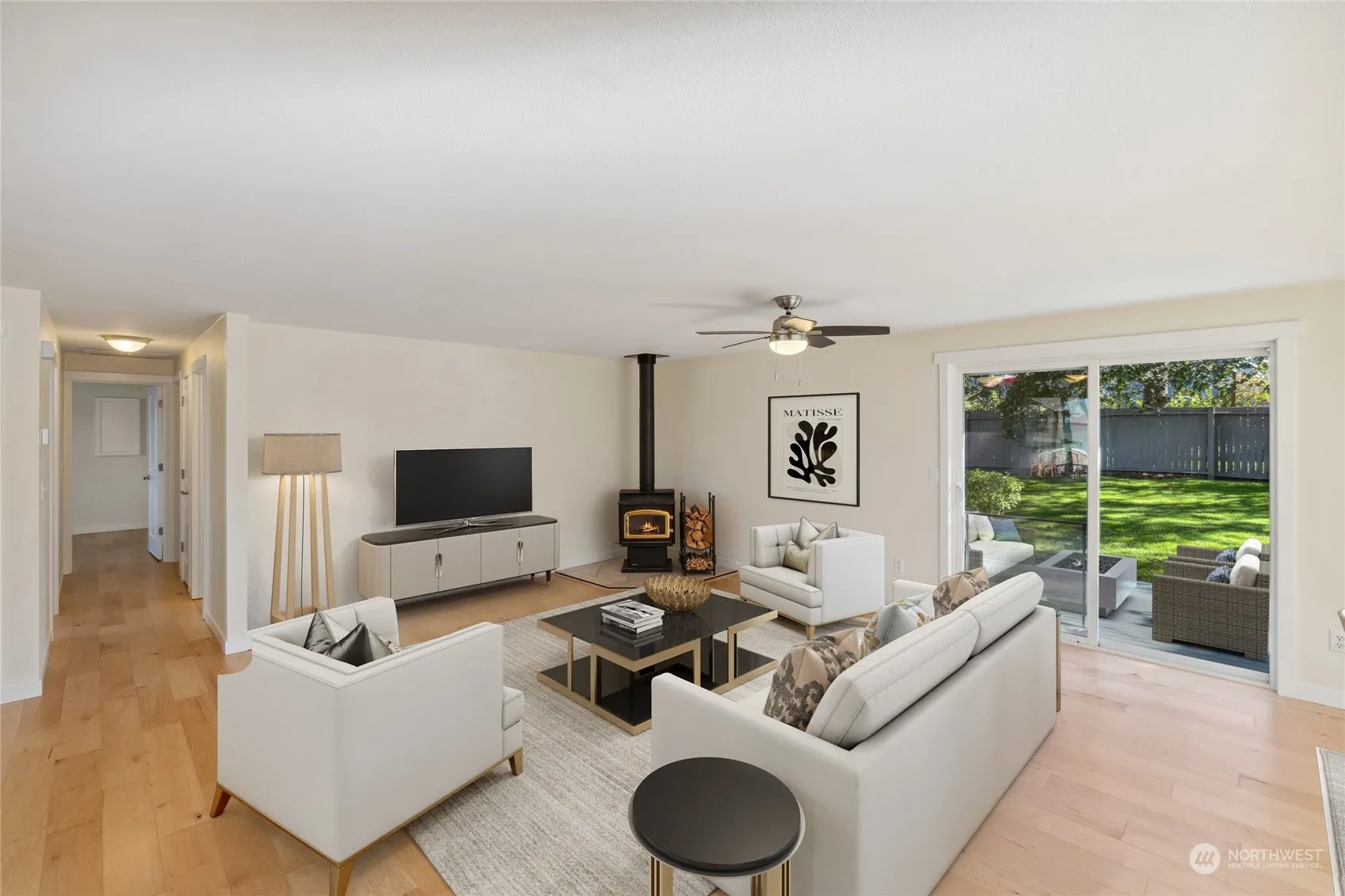 This charming one-level home, nestled in a great neighborhood ideal for walking offers a fresh new look with updated paint, flooring and modern kitchen and baths. The open floor plan creates a seamless flow, featuring a cozy living area with a wood burning fireplace. Enjoy summertime outdoor living with a large, fenced yard and a sunny south facing deck. Additional perks include generous RV parking and the location is just minutes from walking trails and downtown. Perfect for easy, convenient living!