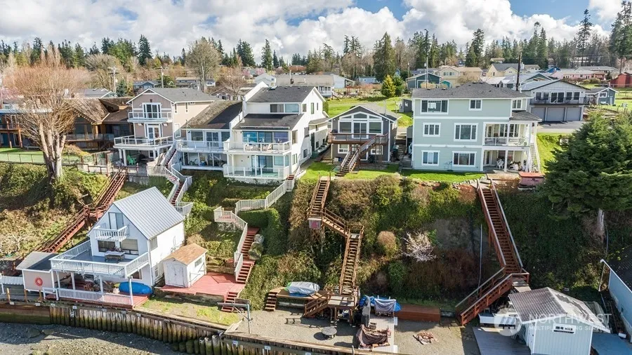 Love where you live with this spectacular Warm Beach water front property. 3060 sq. feet of living space, two decks, and ample windows to allow for light and views of Camano Island, Port Susan, and the Olympic Mountains. Home boasts 30 feet of water front with an out building for storing gear for the sound. Full kitchen on the main floor and an additional full kitchen downstairs. Full bath on the top floor between the two bedrooms. There is a 3/4 bath downstairs. Stairs to the beach. The deck is unique, situated and constructed for privacy. Outdoor shower on lower deck. Enjoy the best of Puget Sound living. Close to Stanwood and Smokey Point. See this property today.