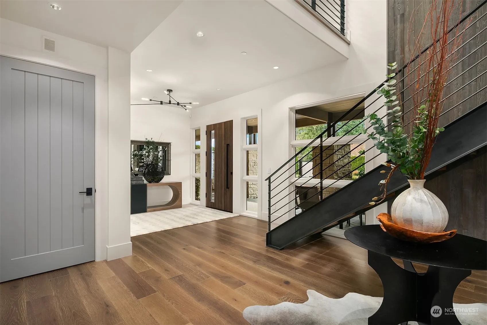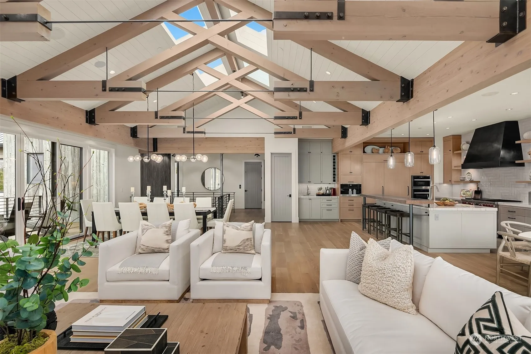A true masterpiece by Adam Leland Homes, this contemporary farmhouse boasts west-facing Lake Washington views and exceptional amenities. Highlights include two primary suites, a steam shower, sauna, elevator, and gated circular drive. Enjoy expansive outdoor spaces with a chef’s kitchen, view decks, and infinity-edge spa. Inside features a floating metal staircase, rustic steel-anchored beams, home automation, and camera security. The property offers an office, media room, bonus room, and four-car garage. Centrally located near shops, restaurants, downtown Bellevue, and award-winning schools, this home has it all!