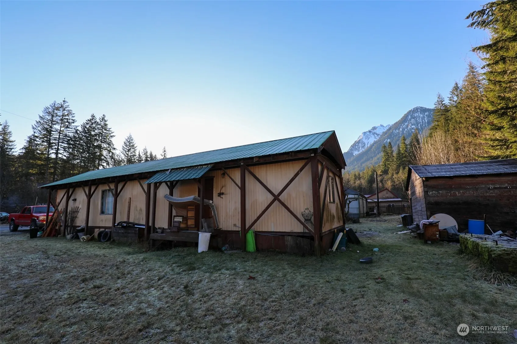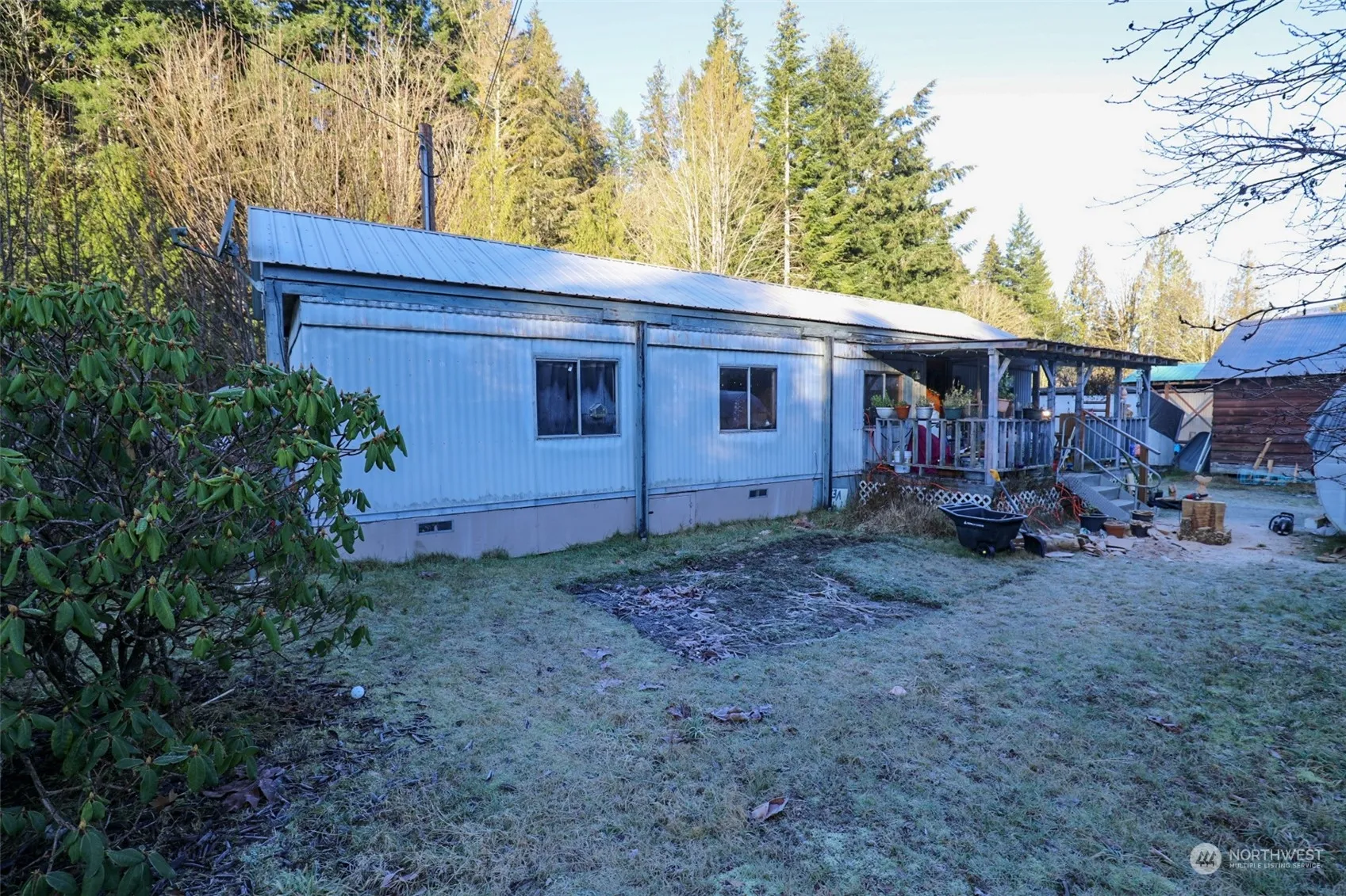 This property is a fantastic investment opportunity! With a two-bedroom, one-bath cottage-style house and two singlewide rental units, it offers multiple income streams while providing a charming living environment. The spacious, flat acre of land is ideal for gardening and outdoor living and has a stunning evergreen tree and mountain view backdrop, creating a peaceful setting on the quiet dead-end street. Having a road that runs through the property provides flexibility for parking and access to different areas of the lot, enhancing the property’s utility. Overall, this property has significant potential for both immediate rental income and long-term appreciation.