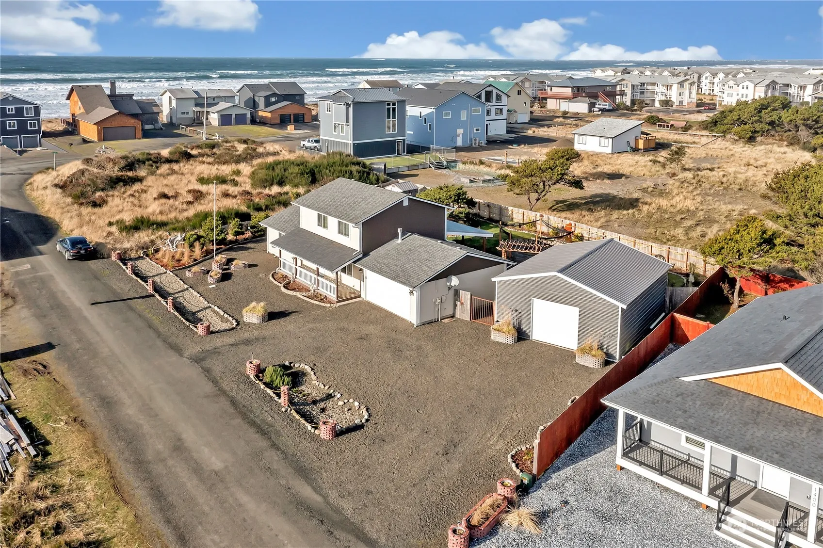 Beautiful Remodeled 3 bedroom, 1.75 bath home w/2Car garage + LG Heated SHOP only 500’ walk to the Ocean w/deeded access. Home has brand new carpet, new paint, all new kitchen appliances (Range, Microwave, dishwasher, Refrigerator) & NEW washer & dryer to remain. 3 bedrooms total-Main level has 2 bedrooms & full bath, Upstairs has 3rd Bedroom, bath & LG Bonus room. This is in a really nice beach community. The lot is large w/a covered patio & hot tub perfect to relax in, Pavered walkways, a firepit, garden areas & gorgeous landscaping. The SHOP is huge. Owner is relocating and has priced to sell! This would make an excellent vacation rental home/Airbnb! Hurry on this unique property that offers so much in this wonderful location!!