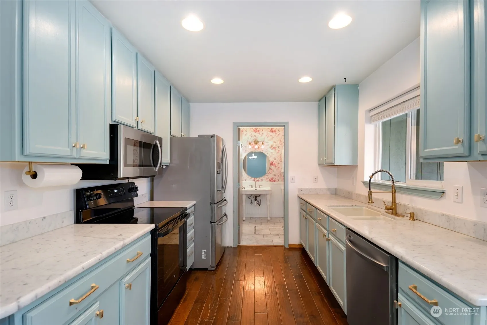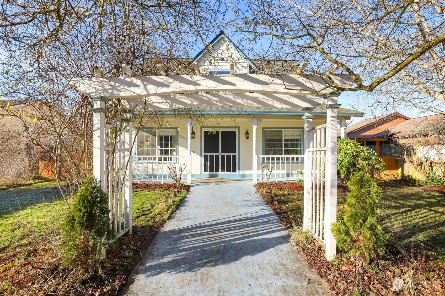 Two story with Primary bedroom on main floor! Inviting front porch welcomes you to your new home. Large living room with gas fireplace. Kitchen with marble counters. Primary with walk in closet and full bath. 2 more bedrooms and a full bath upstairs. Good size Patio outside French doors off kitchen. Two car garage. Newer Roof, Furnace and HW tank. Close to parks and shopping.
