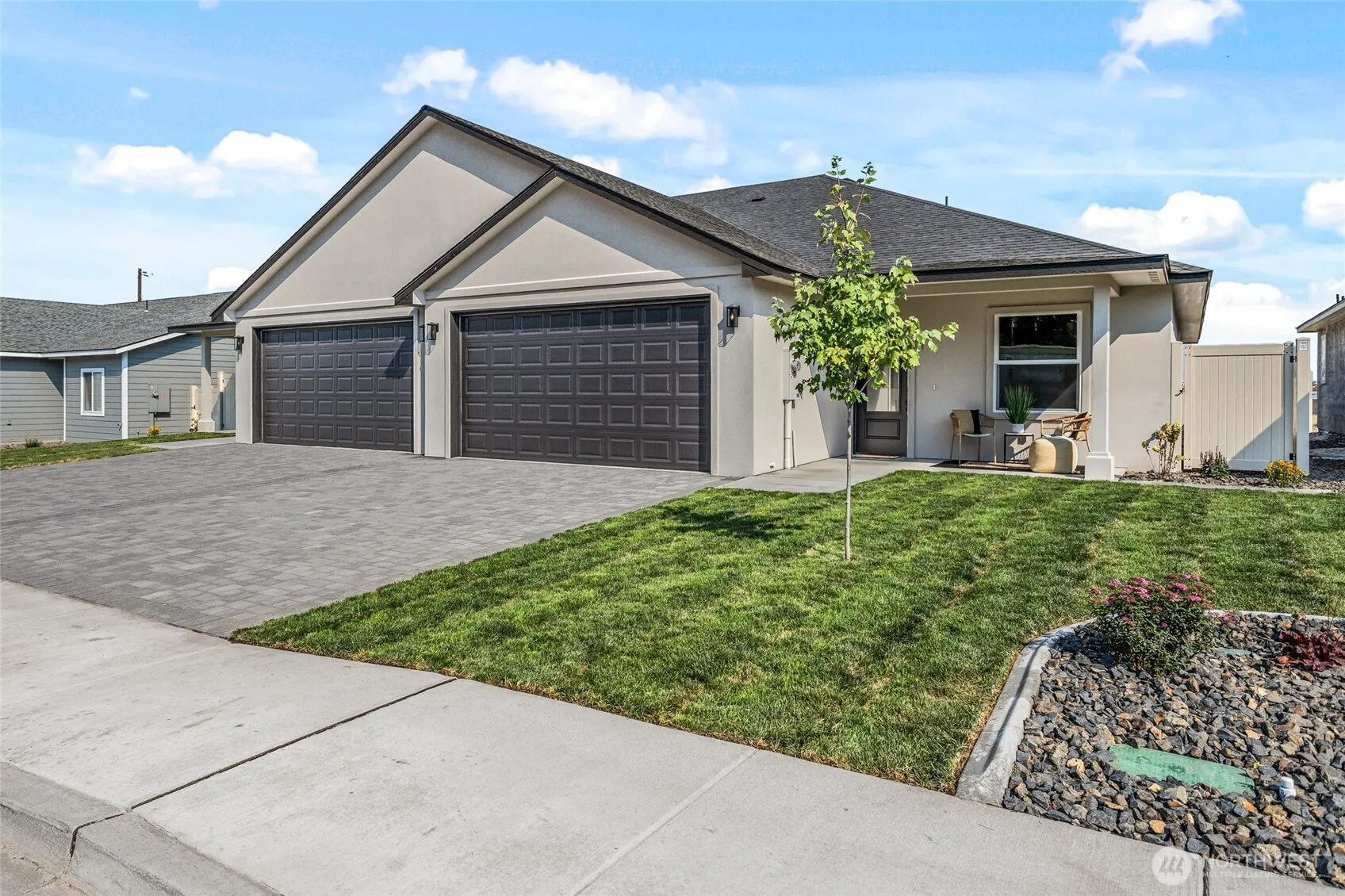 New Construction in the up and coming Champions Park, Yakima! Discover low maintenance living in a quality DH Construction built townhome with easy access to recreation and amenities in a quiet rural setting. Designed with function and beauty in mind, this home features zero threshold at all entry points, Matrix Zero Entry shower system in the primary bath, stucco exterior and driveway pavers, 9 foot ceilings throughout, open concept great room with vaulted ceilings, extra wide doorways and ICF dividing wall for safety and sound barrier. Outside you’ll find a covered patio, fully landscaped and fenced yard that faces east for morning sun and afternoon shade. Preferred lender incentives include $7500 and waived appraisal fees!
