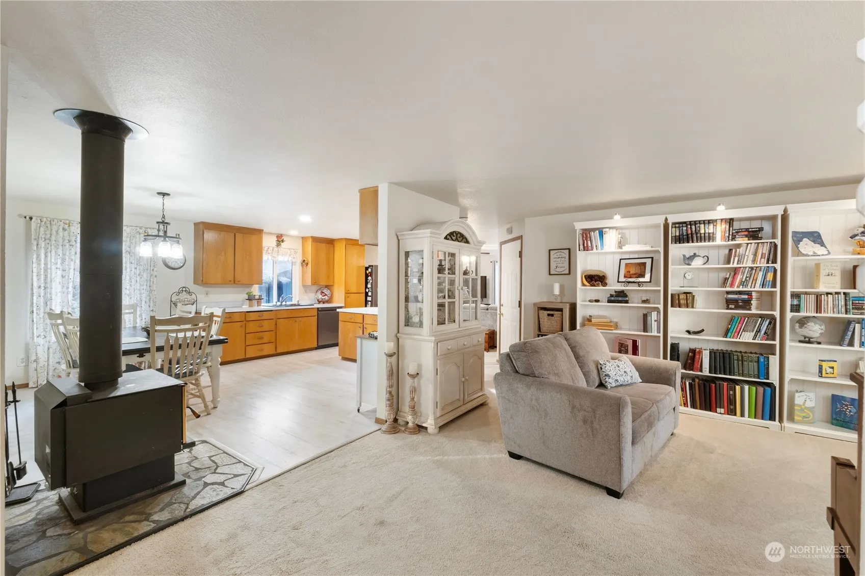 Charming Home Nestled on a Private 1.2-acre Lot with Ample Privacy all Around. This Home Features an Open Floor Plan with plenty of Natural Light, 3 bedrooms, 2 bathrooms, Wood Burning Stove, New Flooring in Kitchen and Baths, New Bathroom Vanities, Newer Carpet and Paint. A 24 x 16 sq. ft. Detached Insulated building, has Wood Stove, 220 wiring, and ample space (384 Sq. Ft.) that can be used as an Extra Office/Rec room or storage space. RV parking. New Shed. Backyard is next to Bud Blancher Trail. Home is close to Schools, Shopping, Bases and all Recreation. Come See Your New Home Today!!!