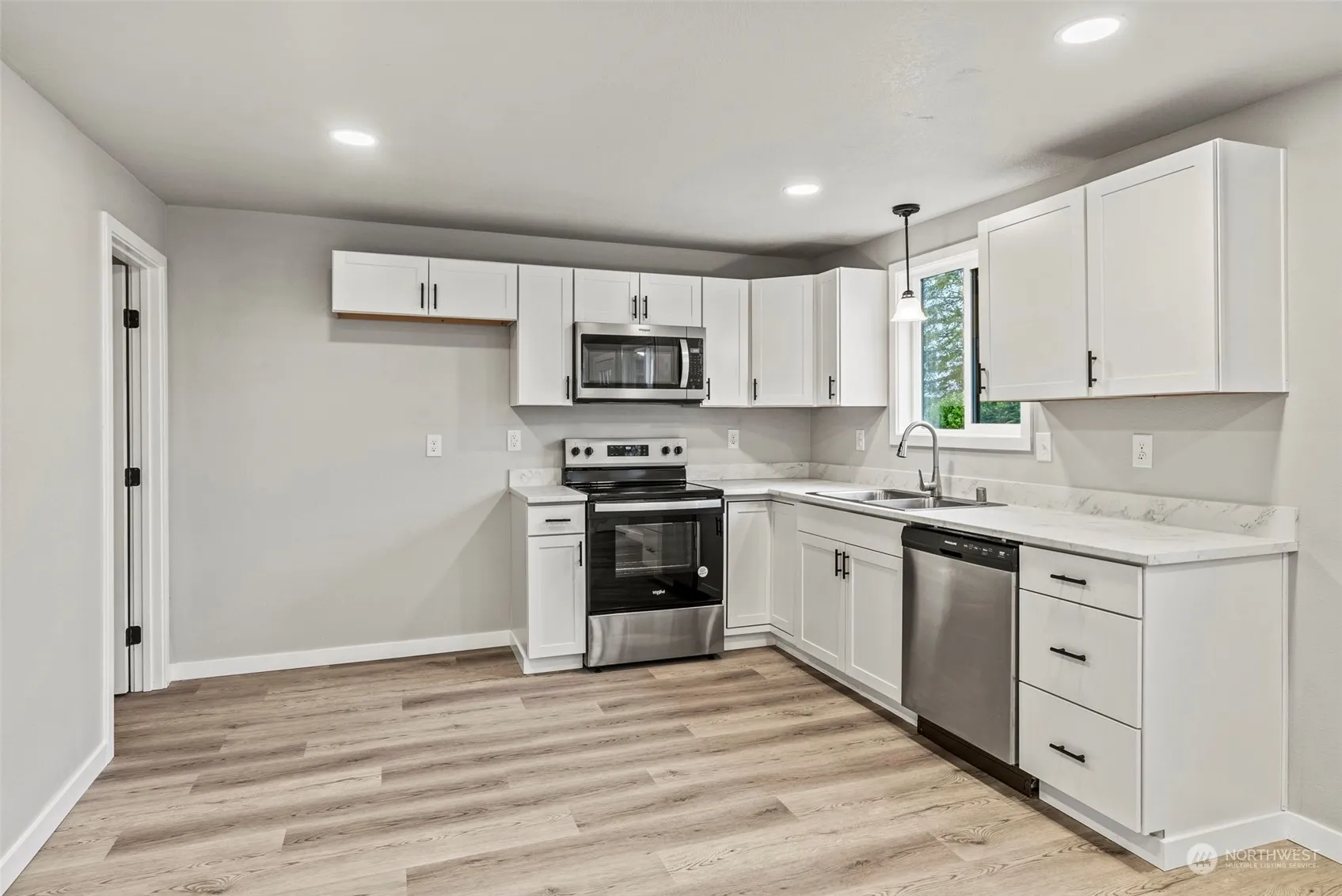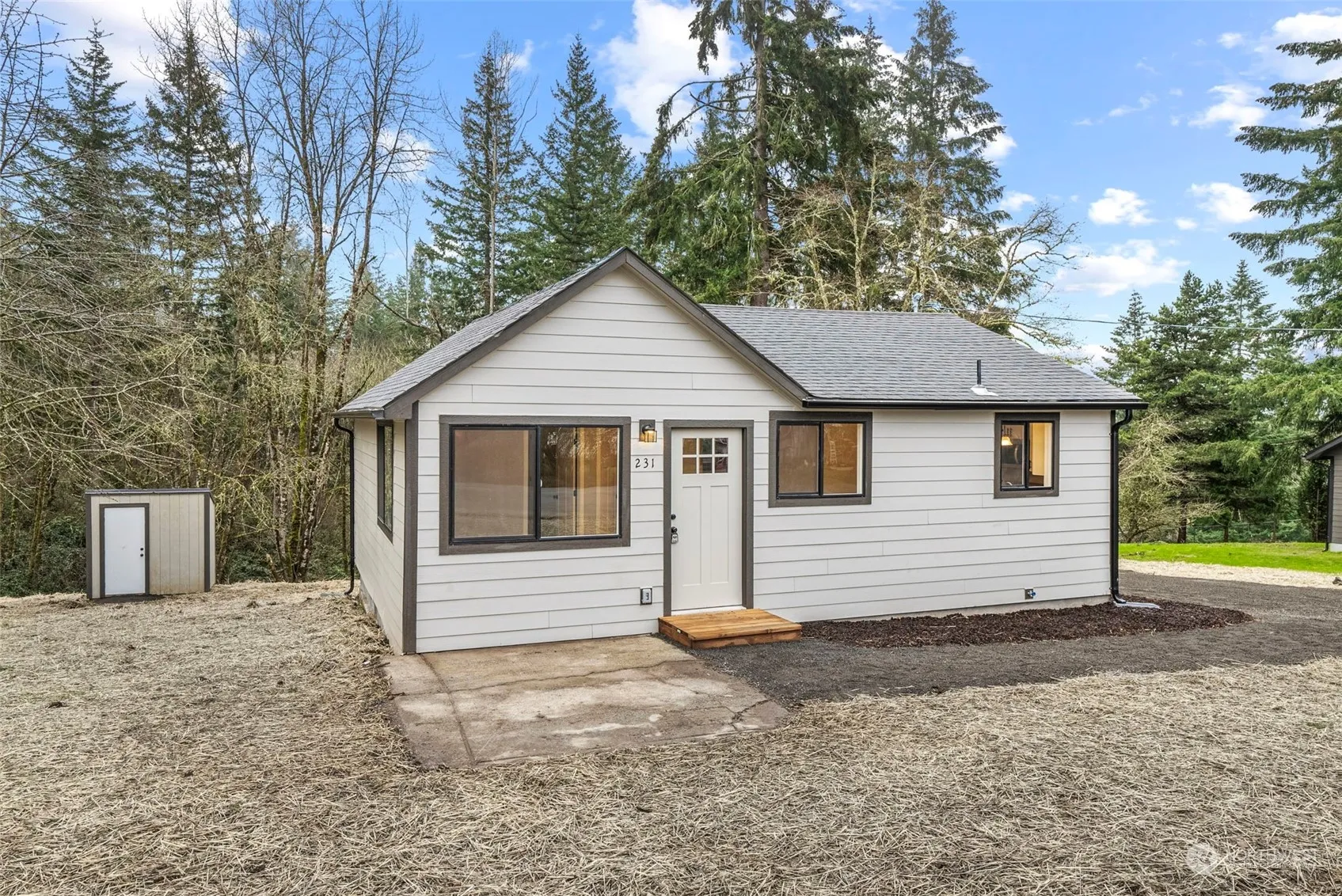 Come see this completely updated 2 bd 1 ba home situated on 2+ acres on a dead end street. Close to I-5 and many amenities. Home features newer roof, windows, siding, cabinets, counters, floors, doors, trims, fixtures, and more! Outside you will enjoy a beautiful landscape with room to build a shop or lots of room for parking. This home feels new, clean, and ready for you!