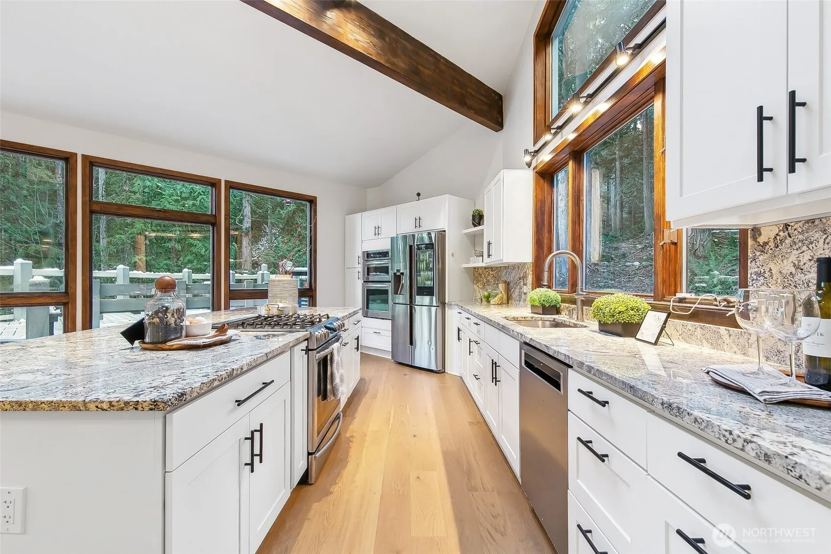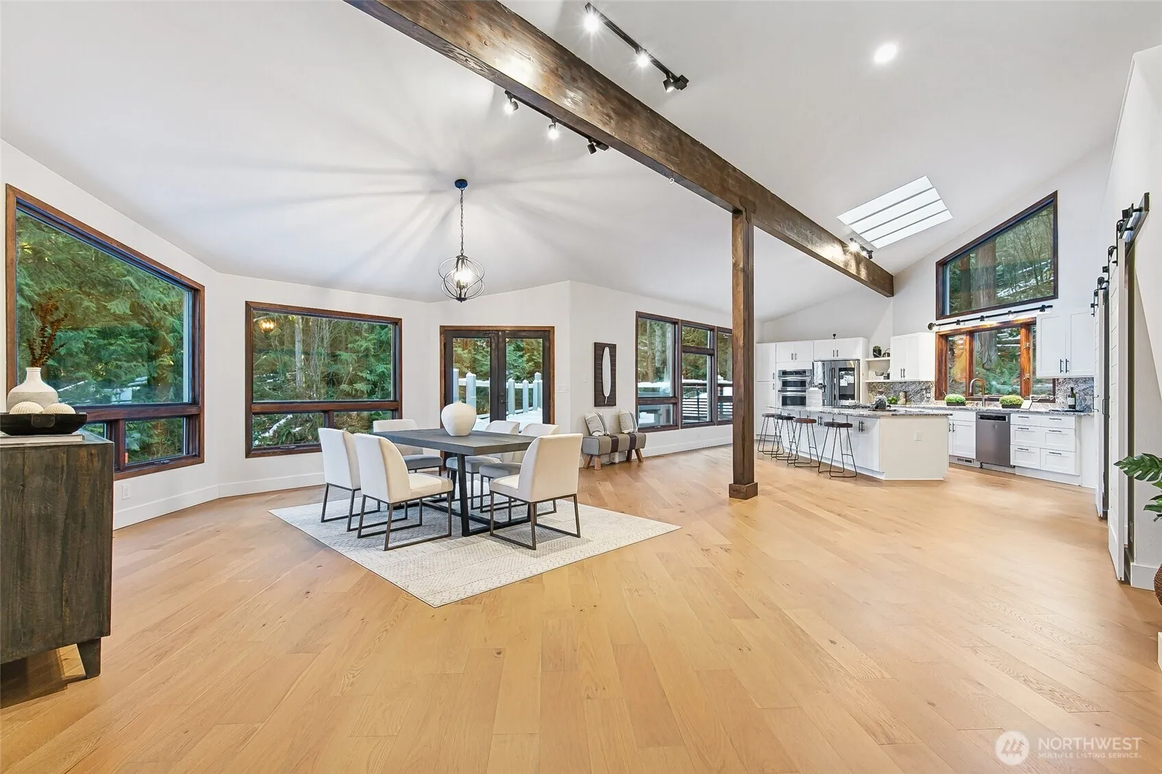 Experience serene living just 20 minutes from Seattle, Bellevue, and Redmond! This versatile home is perfect for multigenerational living or Airbnb investment. Recently remodeled with brand-new metal roof, sheathing, insulation, hardwood floors, and carpet. Enjoy abundant daylight through large windows, a heated 2.5-car garage with woodworking space, and a spacious mudroom with dual laundry sets. Nestled on 5 park-like acres with trails connecting to Grand Ridge Park, it features a large gated deck, fruit trees, raised garden beds, mountain views, and a tranquil creek. Ample parking for RVs or boats and a private paved driveway complete this unique retreat!