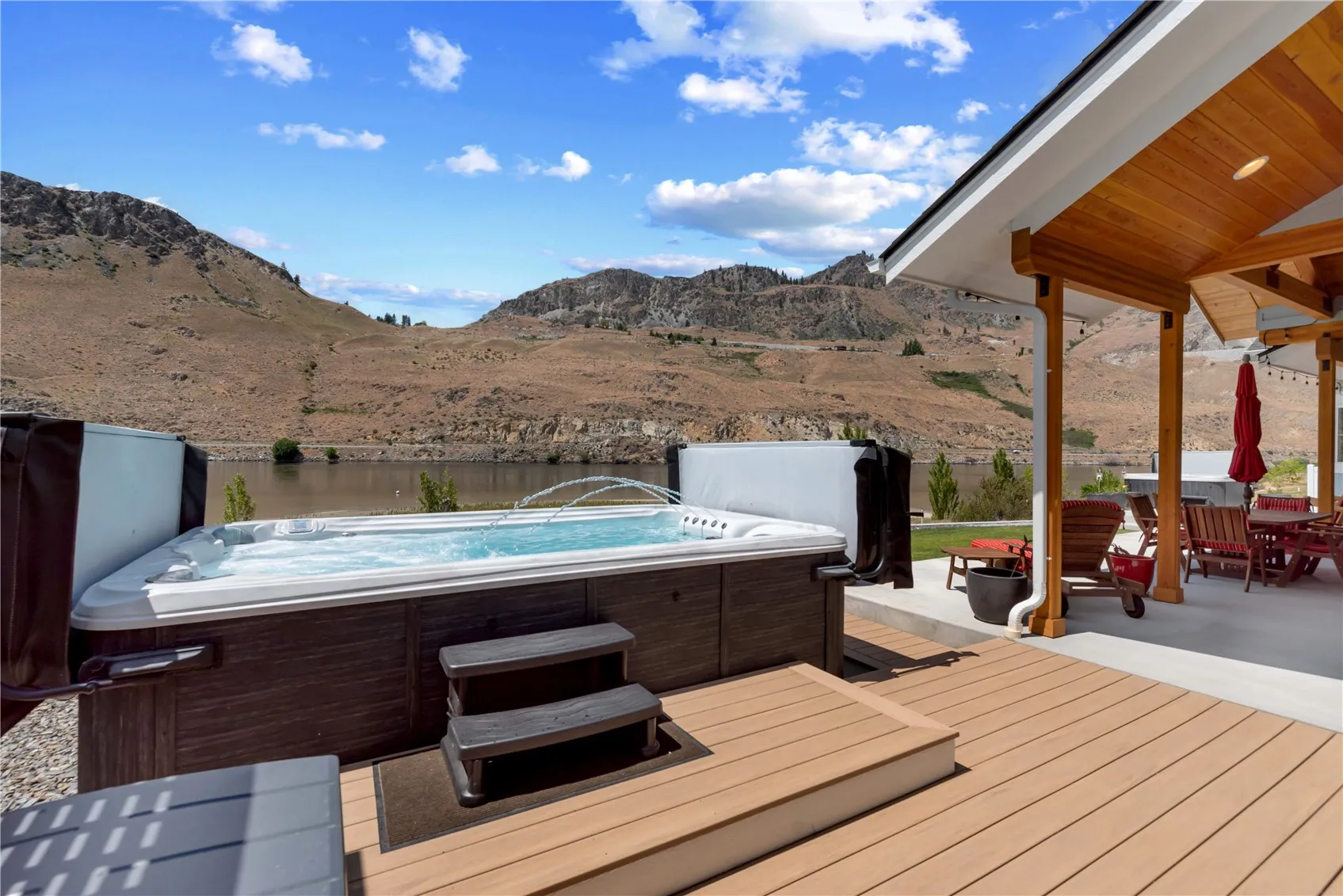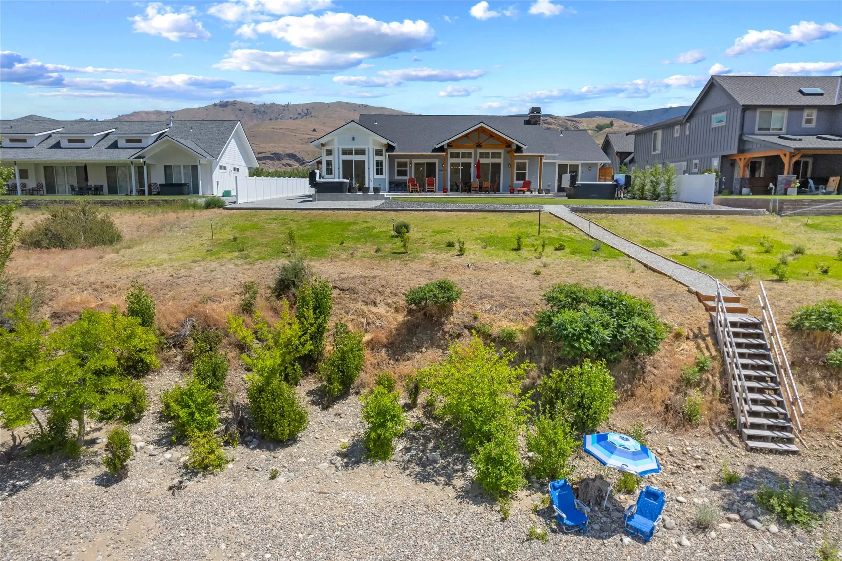 COLUMBIA RIVER LOW-BANK WATERFRONT! Stunning 2022 Harkey Construction built rambler on the Columbia River w/ 100’+ of low bank waterfront & sandy beach. Designed for entertaining, features a great room w/ soaring ceilings, exposed beams, multiple fireplaces & wide plank wood floors. Welcoming kitchen has maple cabinets, high-end appliances (Sub-Zero/Wolf/Miele/Fisher-Paykel/Franke) double ovens & dishwashers, prep sink, coffee bar, radiant heated floors & quartz countertops. Spacious Primary Suite + 2 Guest Bedrooms, Office & Media Room. Sliding glass doors lead to outdoor living area w/ dining & lounge area, hot tub, swim spa & outdoor shower. Large 3+ car garage, boat storage & private buoy. 10 min from Chelan. Short-term rentals allowed.