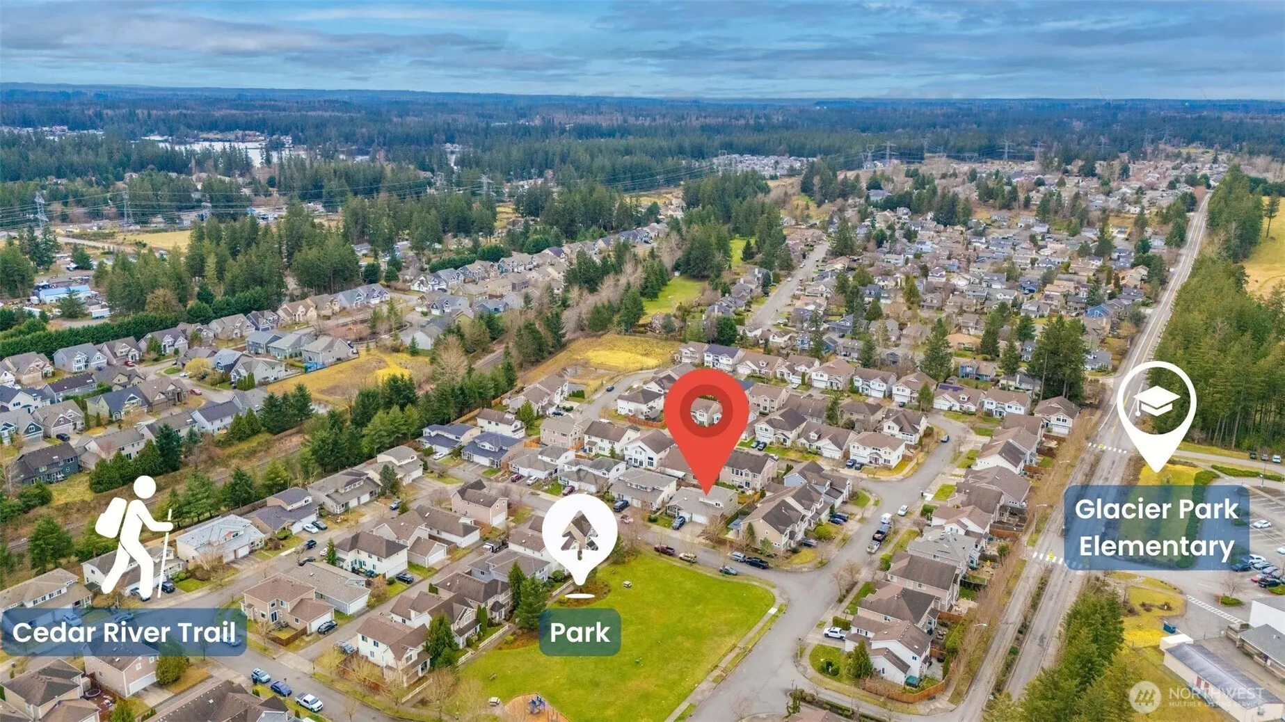 Homeownership Awaits- Across from a scenic community park in the sought-after Glacier Valley neighborhood, this former model home shines with charm & convenience! Offering a bright and open layout, enjoy hardwood floors, a spacious kitchen with a center island, quartz counters, tile backsplash & stainless appliances. The primary suite boasts a walk-in closet & en-suite bath. Two additional niced sized beds & main bathroom. Entertain or unwind in the fully fenced backyard with patio & low maintenance landscaping. With low HOA dues, a two-car garage, and proximity to Glacier Park Elementary, the Cedar River trail, shopping, and transit, this well-maintained home has all that you’re looking for. Brand new roof! Awesome location & lifestyle.