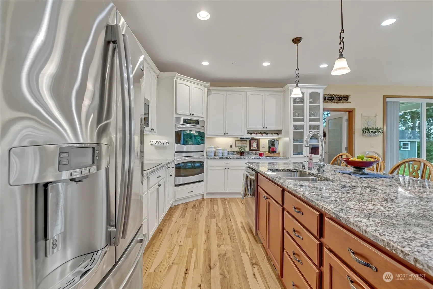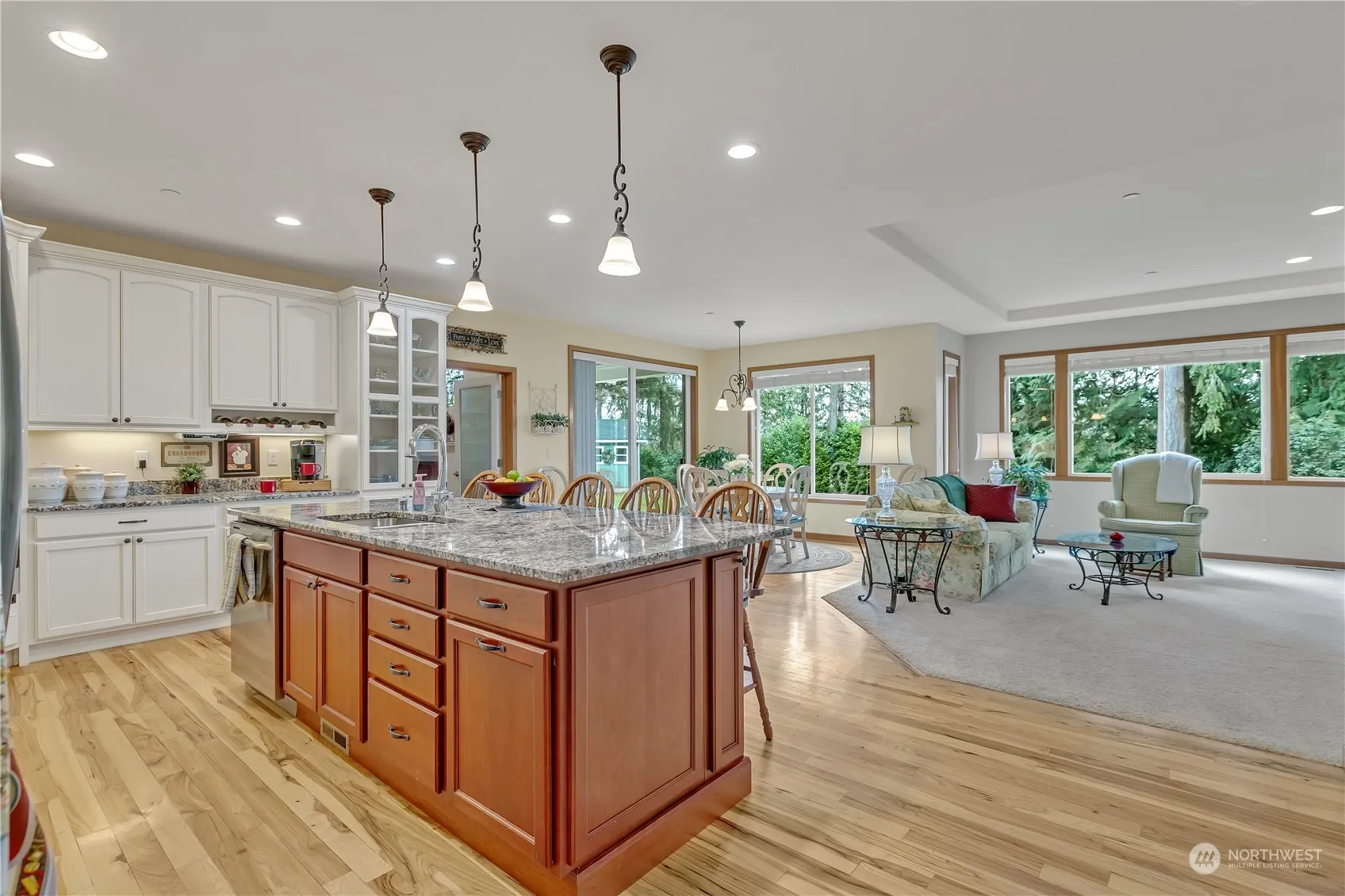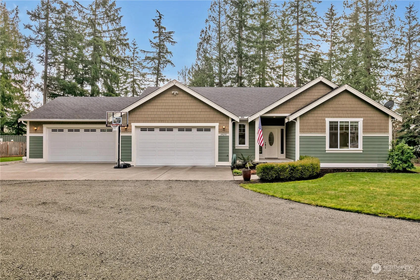Secluded custom built rambler on 1.3 acres in Tahoma Schools. Kitchen open to dining and great room. 9+ foot ceilings throughout. Coffered ceiling in great room. Rear has southern exposure for good natural light. Large kitchen with granite counters and custom cabinetry. Large 10 x 12 walkin pantry could be den/study or mixed-use room off kitchen. Huge Attached 4 car garage divided into two spaces. One garage for two cars with 1/2 bath and storage space. The second garage is 32 x 24 for workshop, hobbies and or cars. Home was built with 3 foot doorways and ramps to front door and back patio for good wheelchair accessibility. 1/2 Bath in garage. California closets, hickory floors. propane fired generator. Large rear patio. 12×16 shed.