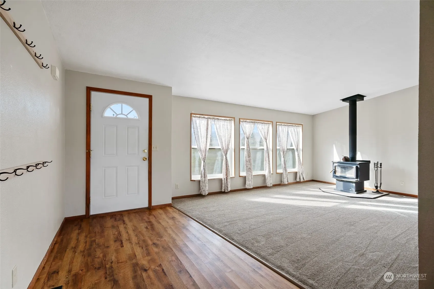 Looking for affordable country living? This 4 bedroom, 2 bath home sits on just under 5 Acres (4.98) and has a large shop garage. the property is located on the end of a private lane is bordered on two sides by vacant state land this home offers stunning views and plenty of privacy. Kitchen has plenty of counter space, propane stove and large pantry cupboards and opens up to an eating space. The wood stove provides ample heat in the chilly winter months to both living spaces. With a newly updated carpet, furnace heat pump and newer roof the home is turn key and ready for its new owner. A whole house propane generator is included in sale. The detached shop offers all the extra storage space and parking.