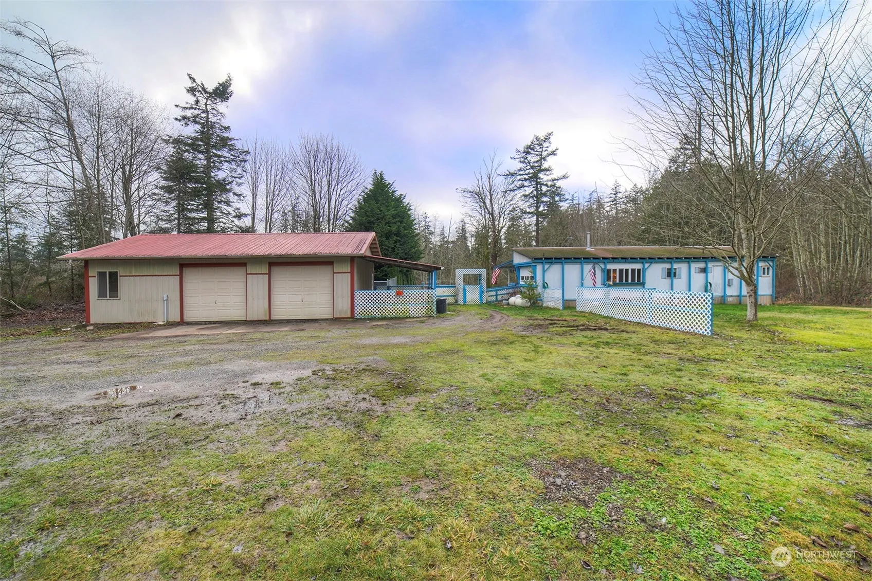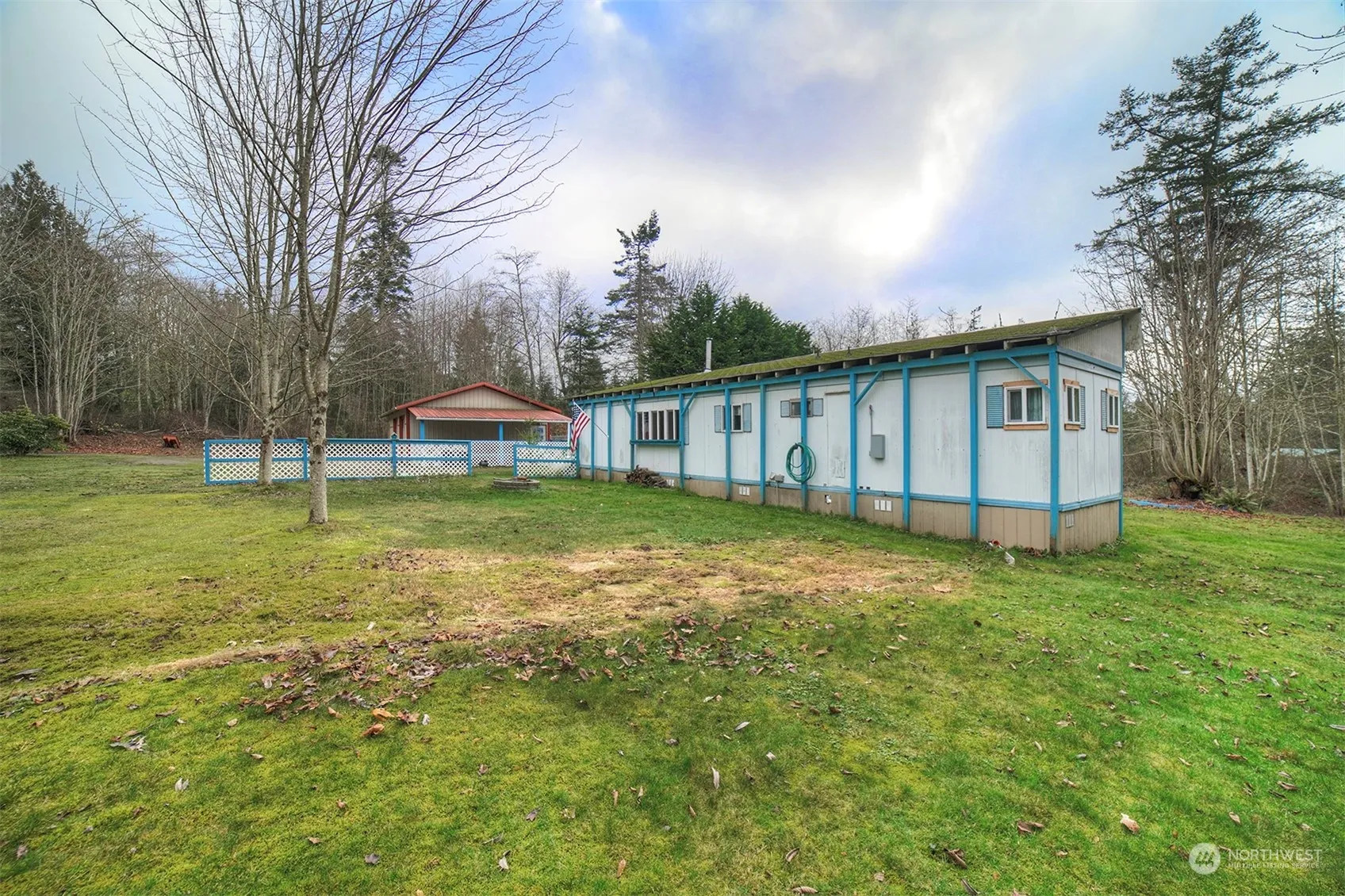 Discover an incredible opportunity to own developed acreage in Kingston! This charming 5.05-acre lot comes equipped with power, a 2-bedroom septic system, a 31′ hand-dug well, and propane. The property features an 864 sq. ft. shop/garage built in 2005, a covered carport, a fenced dog run, fruit trees, a small orchard, and a separate 50-amp power/water hookup for RVs. Included is a 904 sq. ft. 1966 manufactured home with 2 bedrooms and 1 full bath. The back-right portion of the property (over 2 acres with blackberries and trees) may offer an ideal build site for a stick-built home. Imagine the potential for water views with a two-story home! Don’t miss out on this lovely and versatile parcel—schedule your showing today!