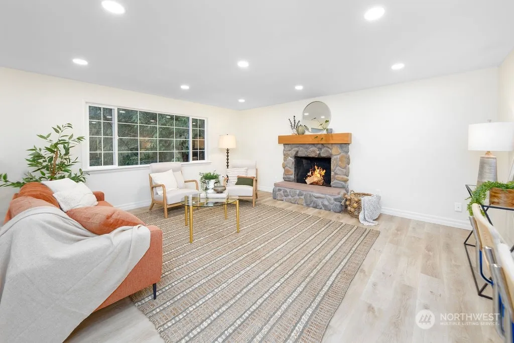 Welcome to this beautiful North Bend home amongst the trees. Every detail has been considered with the complete renovation of this move-in ready retreat. Boasting new flooring throughout, stylish remodeled kitchen w/ seating for 5, open floor plan, newly added 3/4 bath in the primary, gorgeous main floor bath w/ custom tile shower & cabinetry, new fireplace ds w/ tons of space for entertaining, dedicated laundry & 1/2 bath. Other upgrades: new lighting throughout, new heating, new paint inside & out, new wood millwork, new insulation & so much more! Outside enjoy new beautiful Trex deck opening to your private backyard w/ greenbelt backdrop! The community of Riverbend has incredible access to the Snoqualmie Valley Trail & river.