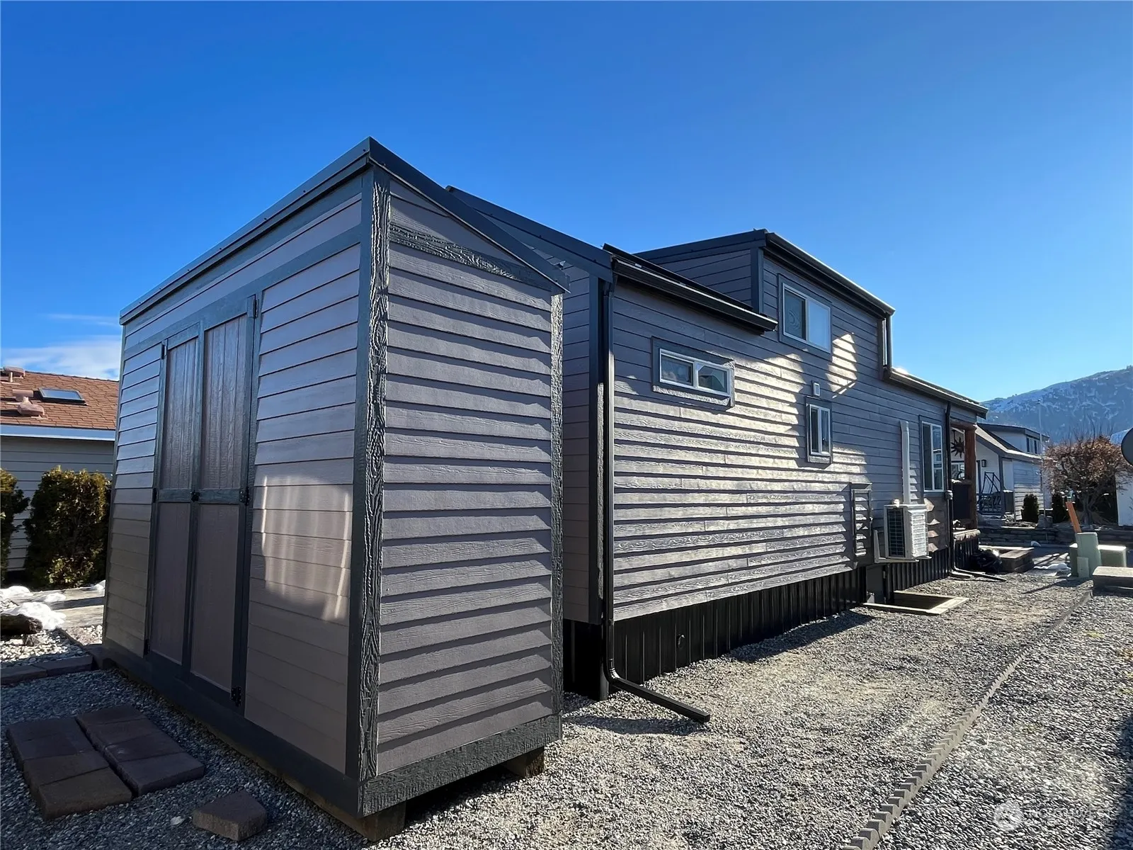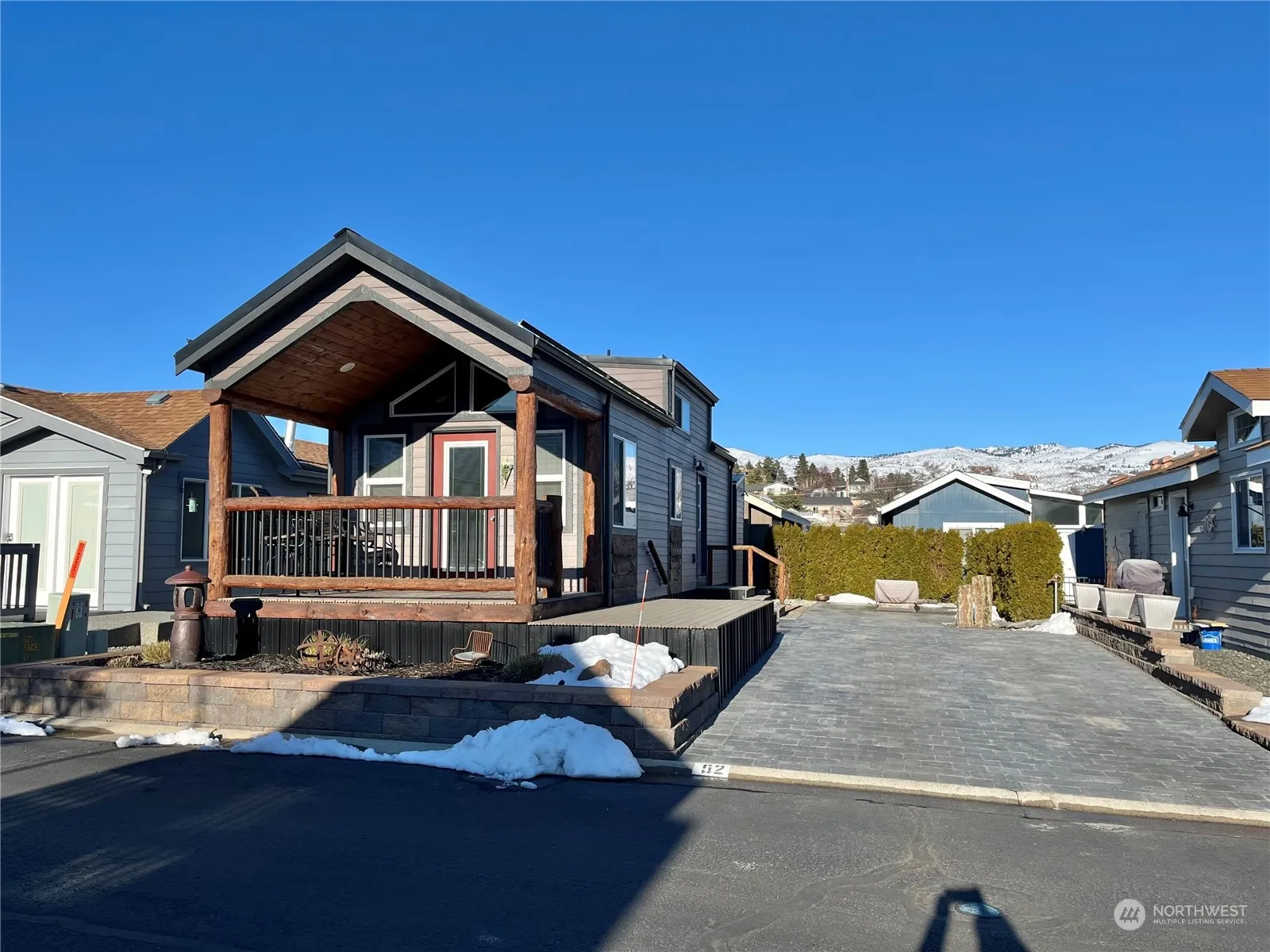 Discover your perfect retreat in this cozy 1-bedroom, 3/4 bath home, designed for easy living in a 55+ community. This custom home features a charming loft for storage/extra sleeping space, granite countertops, a tile backsplash & shower. Unique live edge wood accents add a touch of elegance. Relax on your deck with serene views of the mountains and Lake Chelan or gather around a fire on the large patio. Enjoy the community’s amenities including a pool, boat/RV parking, laundry room, & a clubhouse which hosts a TV room, gym, game room, kitchen, library and more. All this for a very low monthly HOA fee. Conveniently located near the lake, grocery store, and tasting rooms; this home offers both tranquility and accessibility.