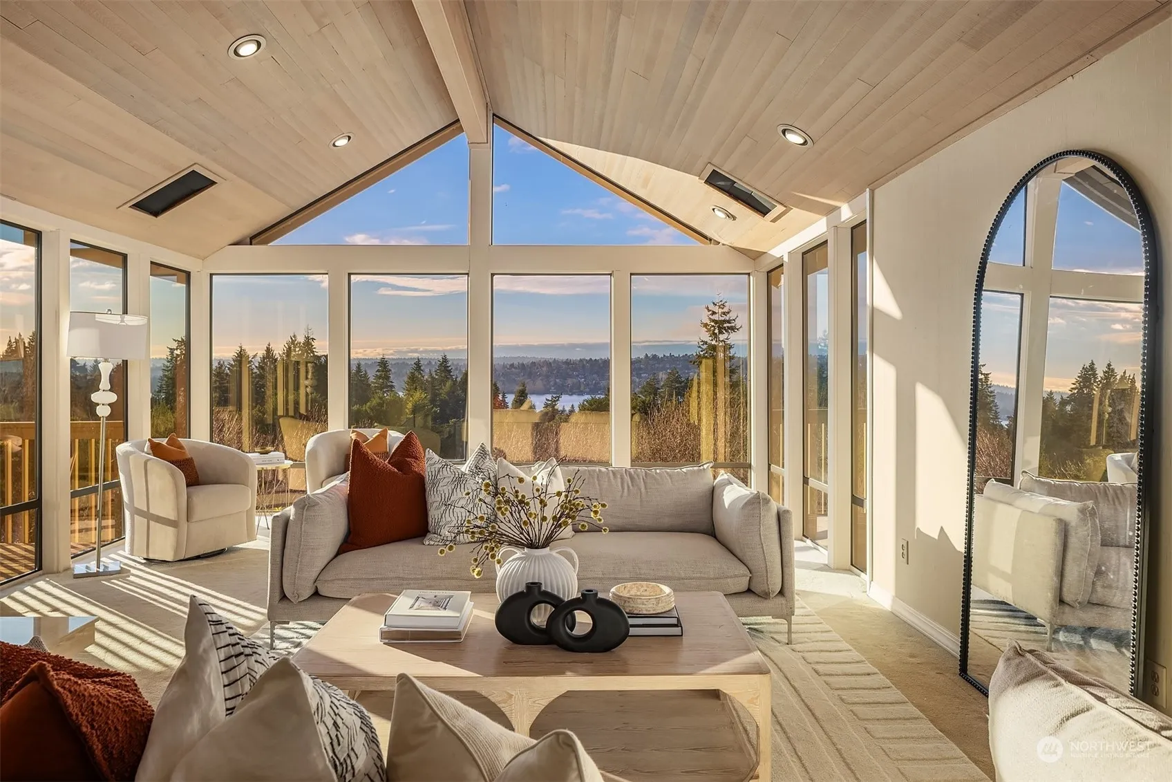 You found it! Western views & spacious living in one of MI’s most sought-after neighborhoods. Nestled on a peaceful, flat street, this versatile property has all the space you need. Soaring vaulted ceilings & walls of windows take in views of Seattle, Lake WA & Olympic Mtns. Ideal floor plan w/ flex spaces – expansive kitchen, dining & living spaces, 2 beds/baths on the main incl. primary suite w/ expanded, dream walk-in closet. Enjoy sunsets from the entertaining deck overlooking a flat play yard. Downstairs rec room w/ wet bar, hot tub room, 3 more BDRs & plenty of storage. Refinished hardwoods, new BDR carpet & new roof. Ideal location – walk to shopping ctr, parks & award-winning schools. An incredible opportunity – this is your year!