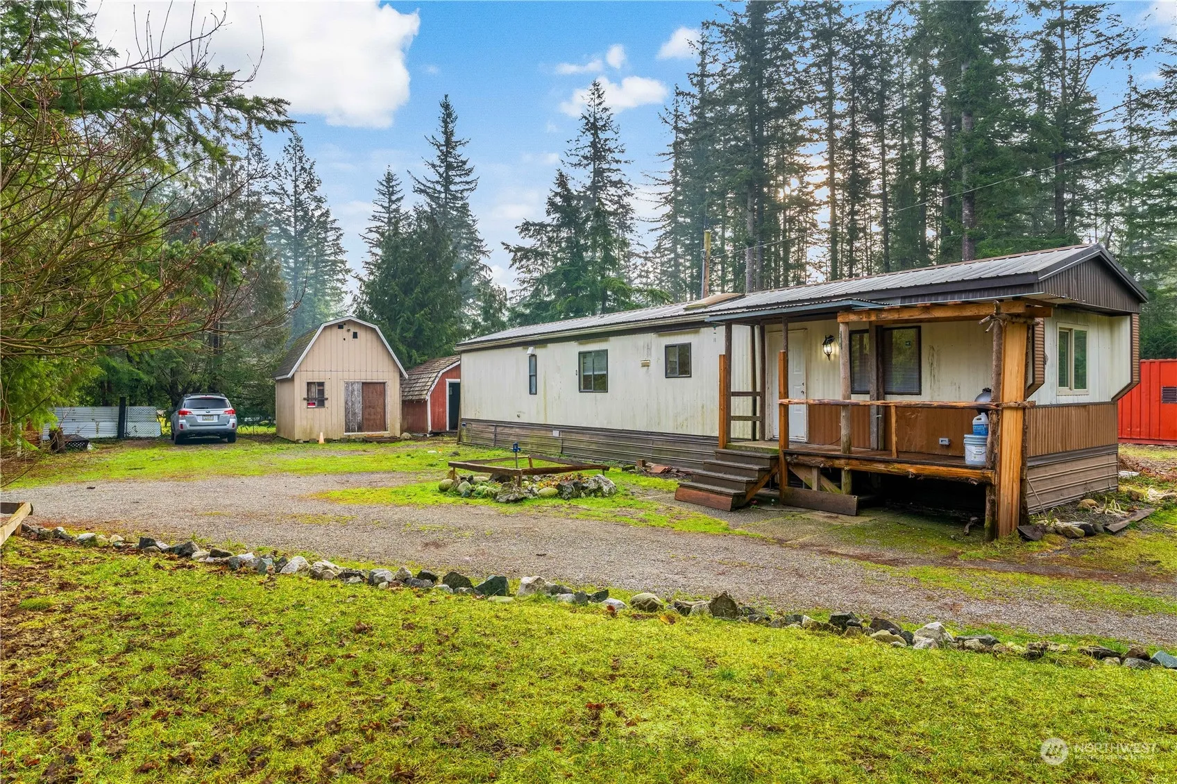 Affordable 1989 singlewide mobile home with metal roof. 2 bedrooms, 1 bath. ~7,500 SF corner lot with privacy shrubs & trees and two outbuildings. 10 minutes to groceries in Maple Falls, 15 minutes to Sumas or Deming. Come and check it out!