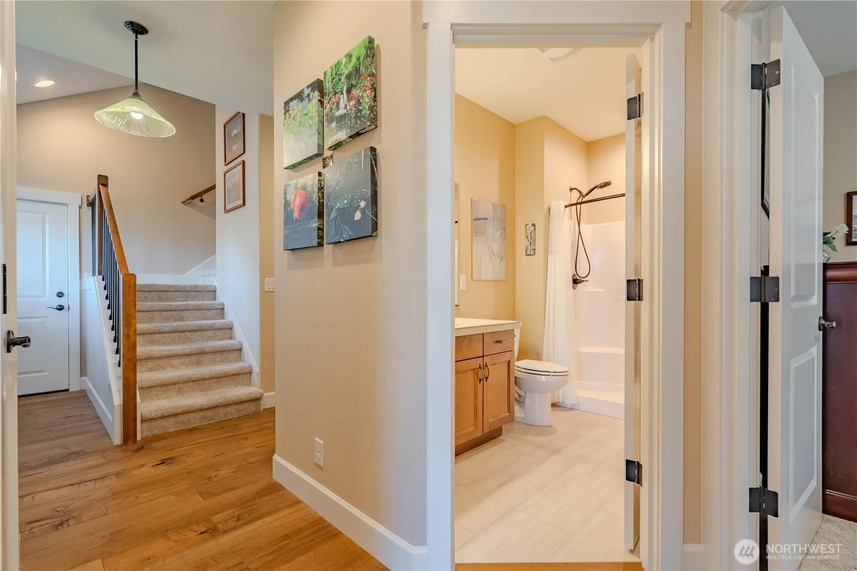 Immaculate 4-bedroom, 3-bathroom home offering spacious living with a thoughtful, open floor plan. The main level features a large primary bedroom with a walk-in closet and an en-suite bath, complete with a soaking garden tub and step-in shower. Two additional bedrooms and a full bath are located on the main floor, alongside a dedicated laundry room with a wash sink. Upstairs, a versatile loft area with two large storage closets provides additional space, along with a private bedroom and full bath. The chef’s kitchen boasts stainless steel appliances, gas range, a large pantry, and upgraded display cabinets, all overlooking the great room for easy entertaining. Enjoy seamless indoor/outdoor living with French doors to backyard.