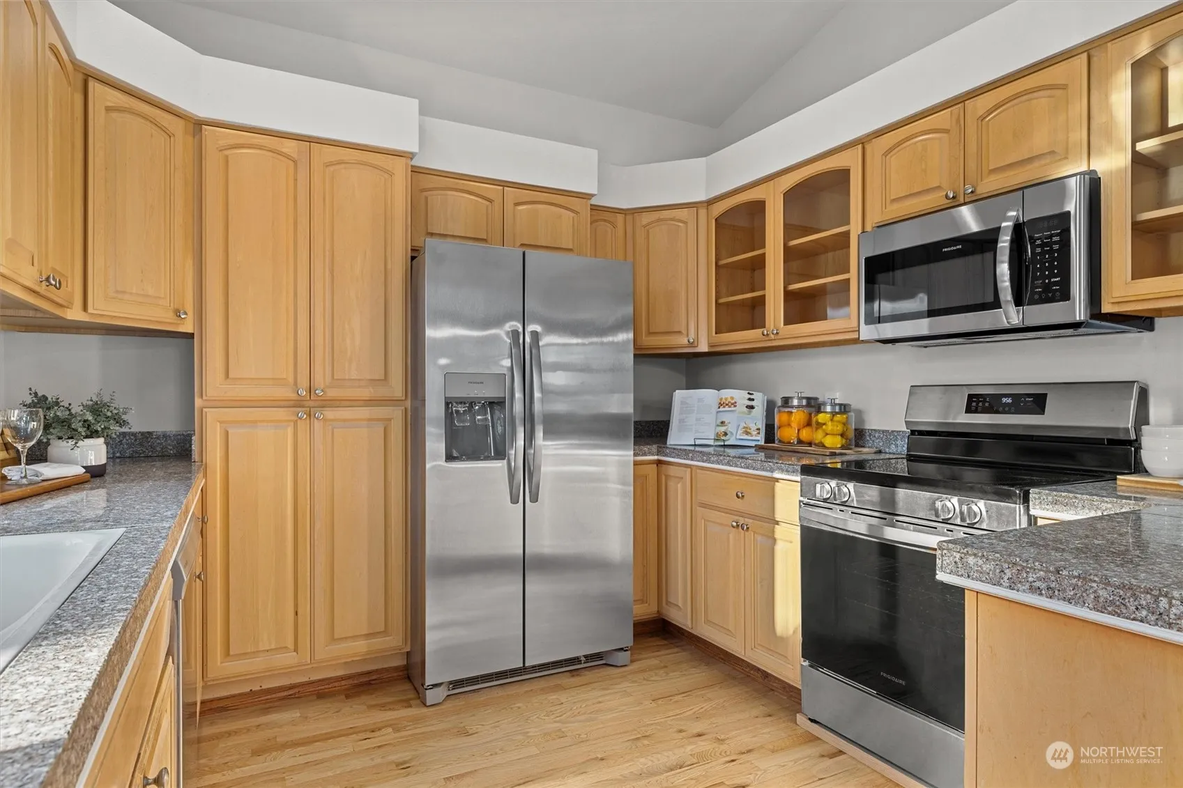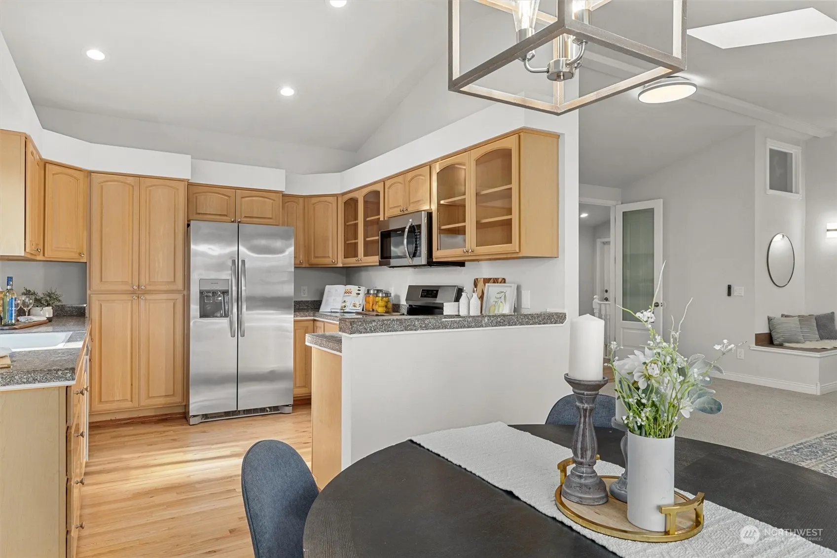 Fantastic move-in ready daylight rambler perfectly tucked away on a cul-de-sac in desirable Foxwood neighborhood. You will love all of the updates including NEW: interior/exterior paint, roof, lighting, carpet, refinished hardwood floors and new upstairs kitchen appliances. Light & bright living room w/vaulted ceilings. Flexible living space, great for multi-generational living with 2 kitchens and 2 laundry rooms, one on each level! Relaxing primary bedroom with 3 closets & a refreshed en-suite full bathroom. Large office or Non-Conforming 5th Bedroom! Lots of extra storage space. Oversized entertainment deck+ big patio plumbed for gas BBQ. Fully fenced yard! Close to schools & shopping. Seller Pre-Inspected