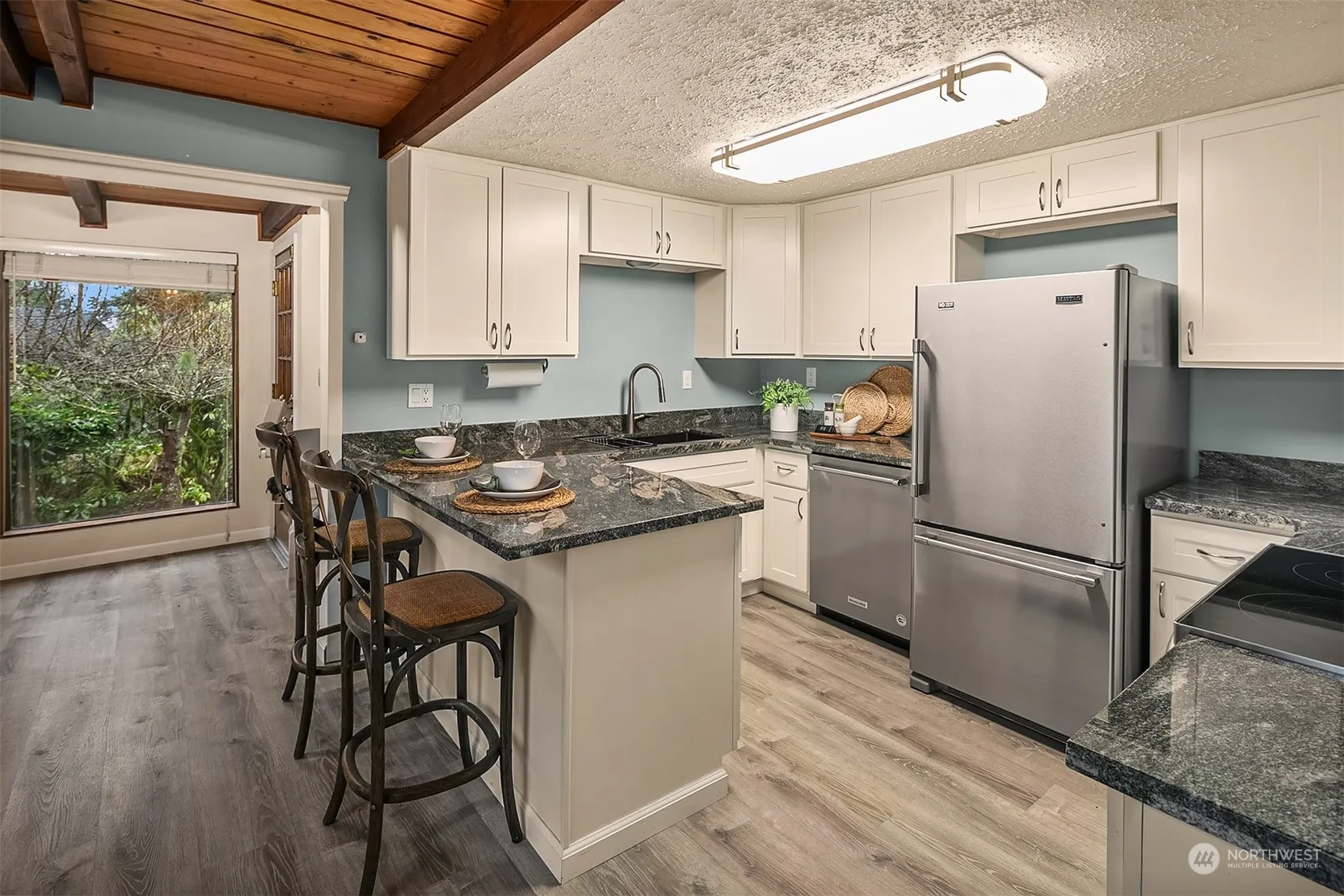 New roof, new attic insulation, new Mitsubishi heating & air condtioning unit, new brick chimney, crawl space remediation plus one year pest service incl. This updated, modified A-Frame is move-in ready! Major upgrades in 2019 incl new kit cabinets, granite counters, SS appliances, vinyl plank flooring, carpeting & updated baths. Great Rm has floor-to-ceiling windows w/slider to deck, open beams w/T&G ceiling/wall accents & cozy wood stove. Den/Fam rm has 2 closets & adjoining bath/laundry rm. 2nd floor w/lg primary bedroom, loft bd/office & 3rd rm/office. Covered back entry/patio, shop, storage, carport & lg dog kennel. Wired for generator. Mature fruit trees. Easy acces to I-90, local schools, shopping & recreational opportunities.