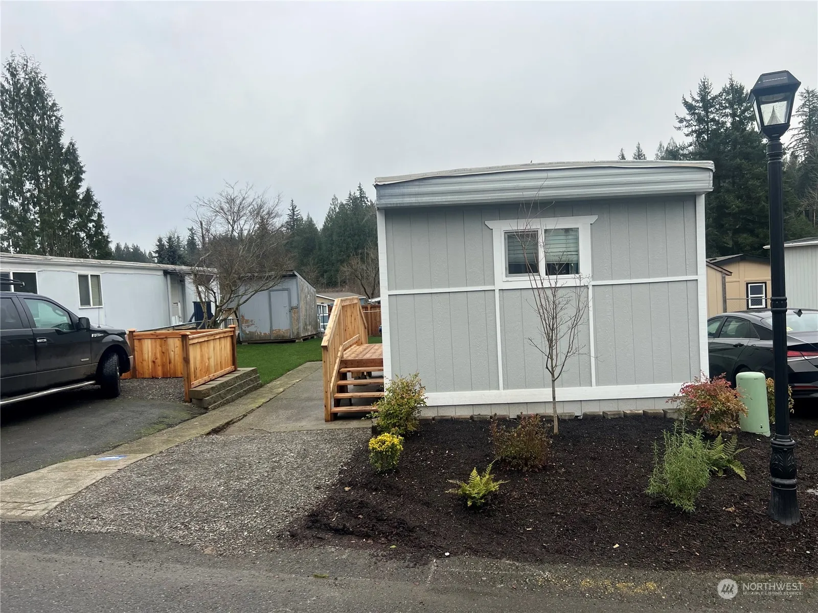 Welcome to Diamond Valley Manufactured Home Community nestled in the heart of historic Black Diamond! Discover this charming 2-bedroom, 3/4-bath Single Wide home. Step into a cozy front entry with a welcoming NEW porch. This previously remodeled home features a kitchen that opens to the living room, complete with stainless steel appliances. Enjoy the convenience of a tiled walk-in shower, freshly painted walls, new cabinets and counter tops, and double-pane windows ensuring comfort and energy efficiency. Fully fenced yard. new grass, shed/storage will be painted before closing Parking for 2 cars. Join our pet-friendly community today!