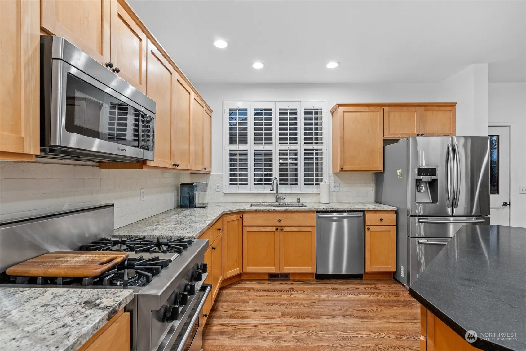 Fantastic location that boast a tree lined street in sought after Snoqualmie Ridge. Walk to the Village, Restaurants, Schools, park, Golf Course. This wonderful home features Hardwood floors on the main flr and stairs to upper flr, main floor office a newly remodeled tiled half bath. The Kitchen is open to the Great room with tons of cabinets, Granite/quartz countertops an eating nook and intimate dining rm. The upstairs has 3 bedrooms a bonus/loft and full bath. The spacious primary suite has a newer tiled 5 piece bathroom with soaker tub, walk in closet with custom cabinets. The fully fenced back yard is an entertainment oasis, Gazebo,Hot Tub, fire pit, generator and furniture stay over 200k updates, 2 gar, newer roof, ext paint, gas furn