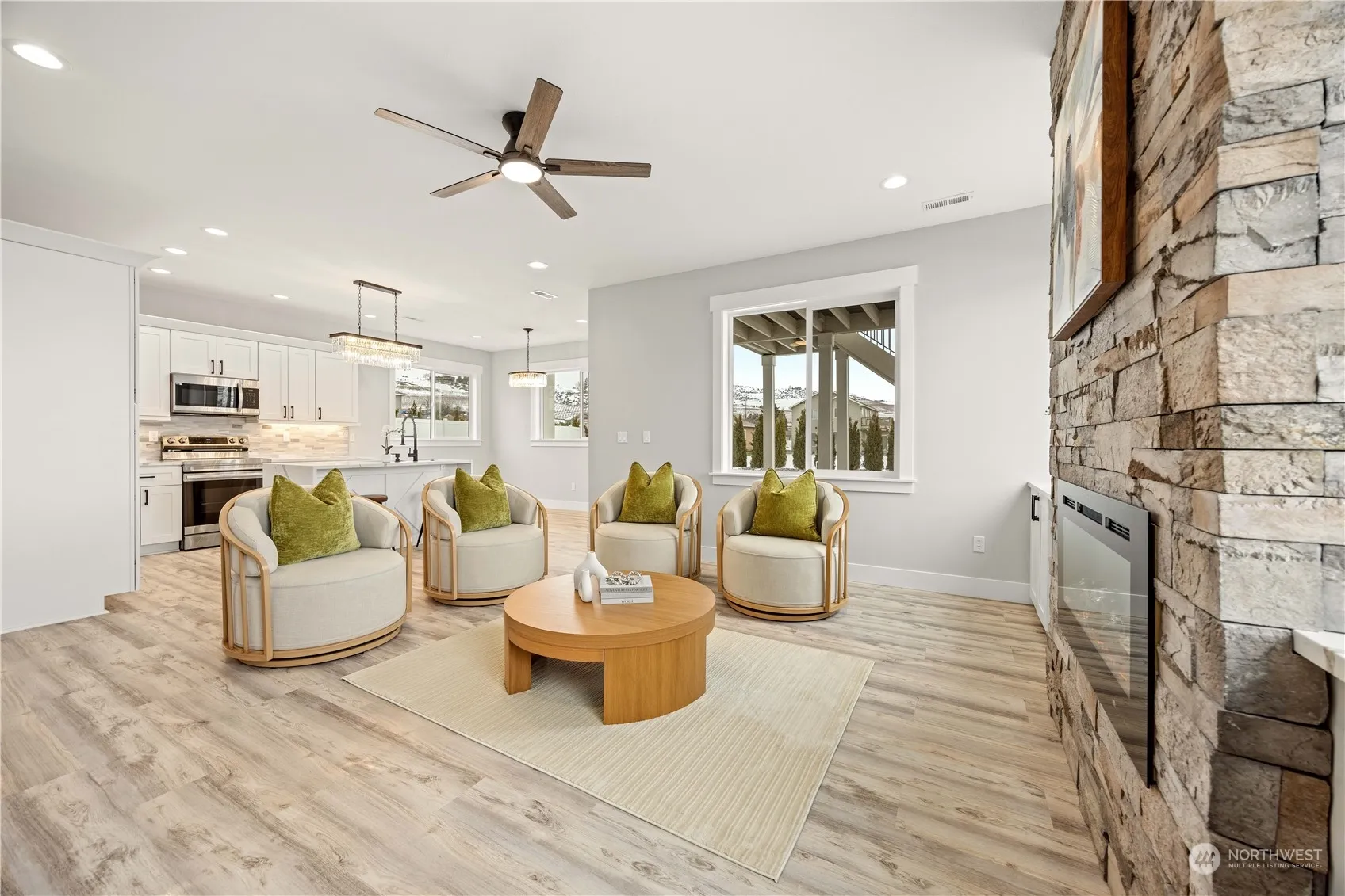 Welcome to Morning Ski Estates at Lake Chelan! This beautifully designed 3-bedroom, 2.5-bath home with an office sits on a fully usable 1/3-acre corner lot. High-end finishes include quartz countertops, a rock electric fireplace, custom built-ins, and a luxurious primary suite with a walk-in tile shower, large windows, and a private covered deck. Enjoy stunning 360-degree views of Lake Chelan, Chelan Butte, and Manson’s agri-tourism. The property offers a finished 3-car garage, extra parking, and all-paved road access. Conveniently located near the lake, boat launch, wineries, casino, and downtown Manson, this home is truly stunning! The Chelan Lifestyle is waiting…. Welcome home!