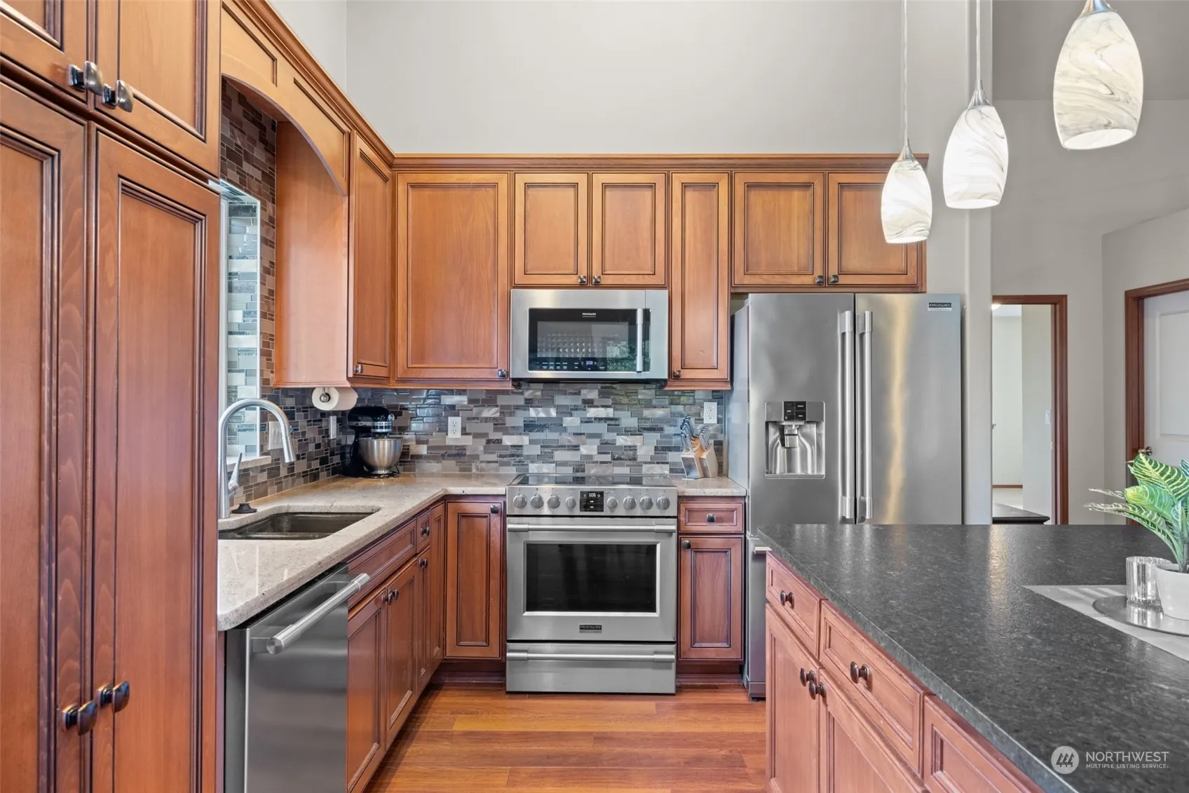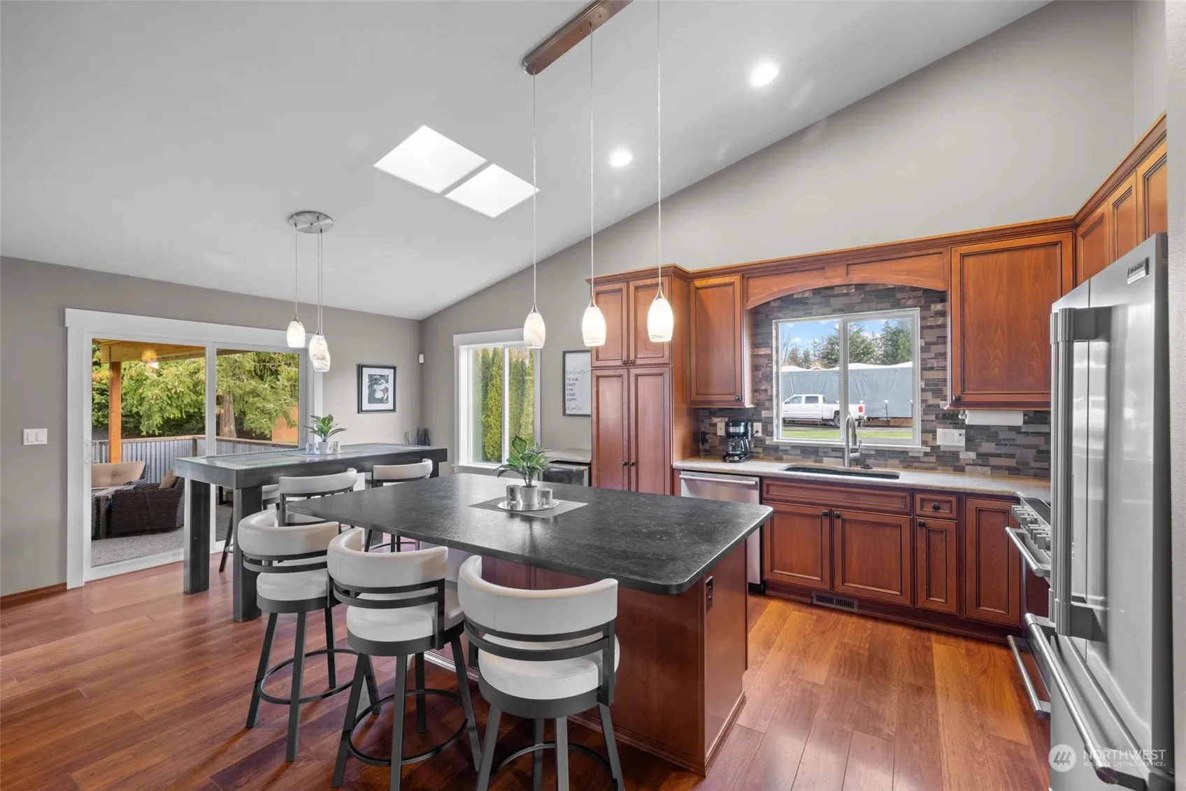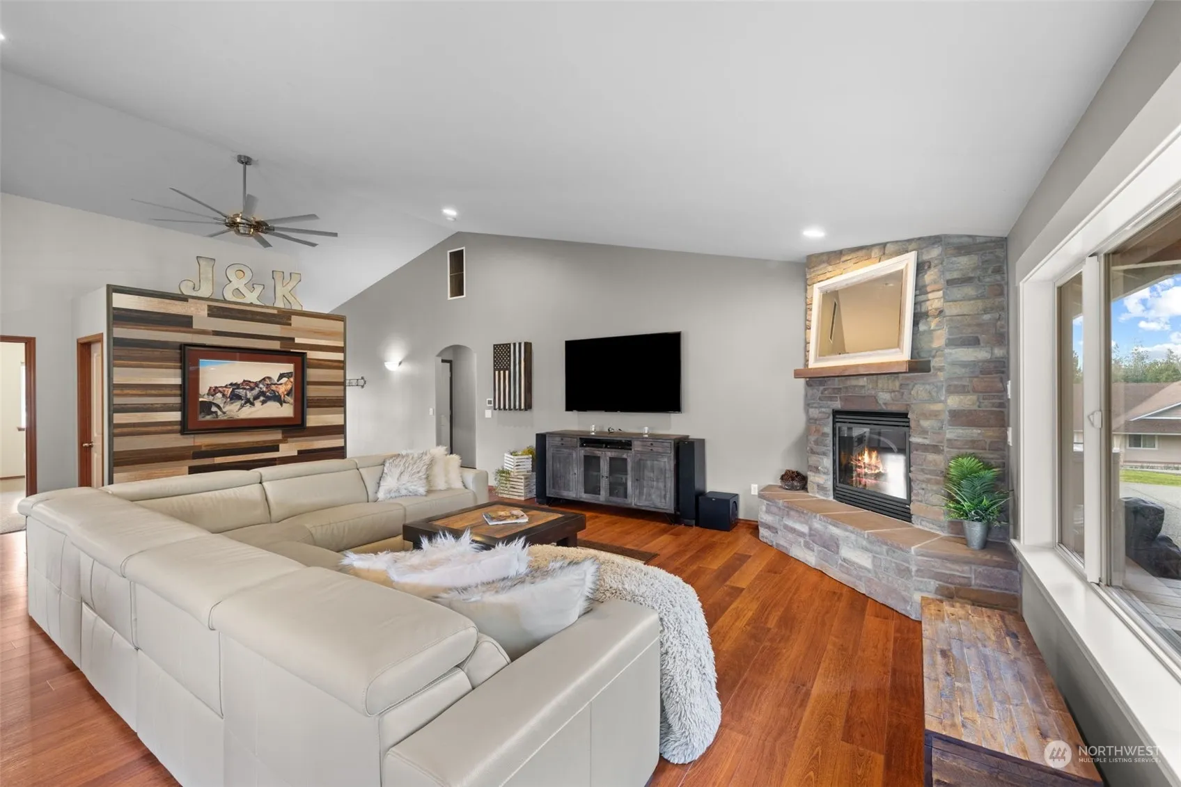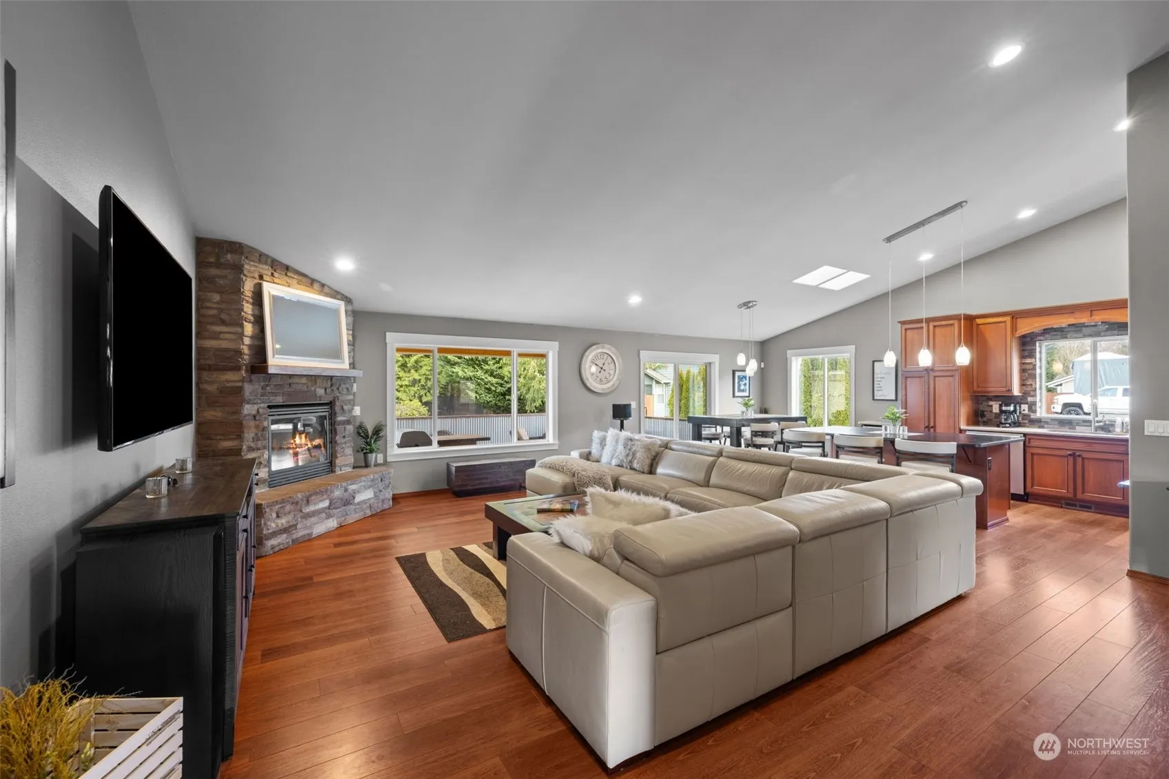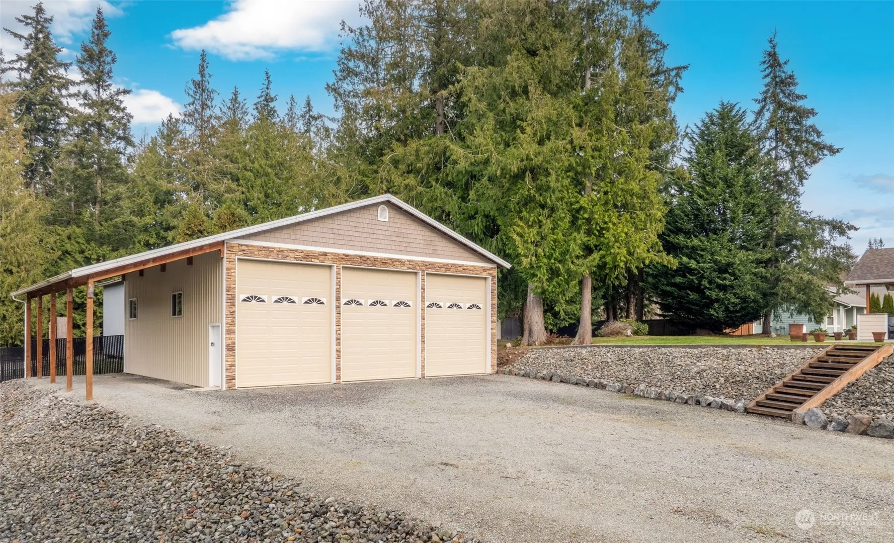 Beautiful one-story home in the sought-after Seven Lakes Community! This stunning property boasts a great room with a gorgeous stone gas fireplace, an upgraded kitchen with granite counters, a stylish backsplash, and modern appliances. The primary suite features a giant walk-in closet, French doors to the hot tub, and an en-suite with an oversized tiled shower. Step outside to an expansive covered outdoor living space with a built-in BBQ area, perfect for entertaining. The 1,600 sq ft shop with three 14-ft roll-up doors and a private driveway is ideal for a home business or storing all your toys. Extras include A/C, a 3-car garage, and a beautifully landscaped .76-acre yard. Close to beaches and top-rated schools—this home truly has it all!