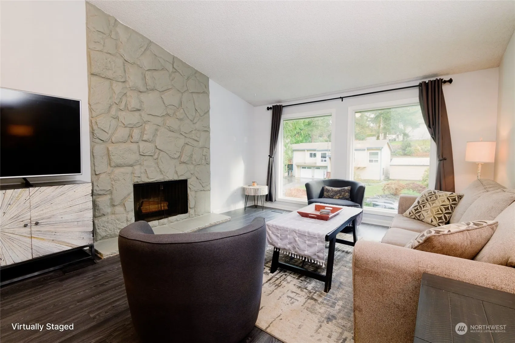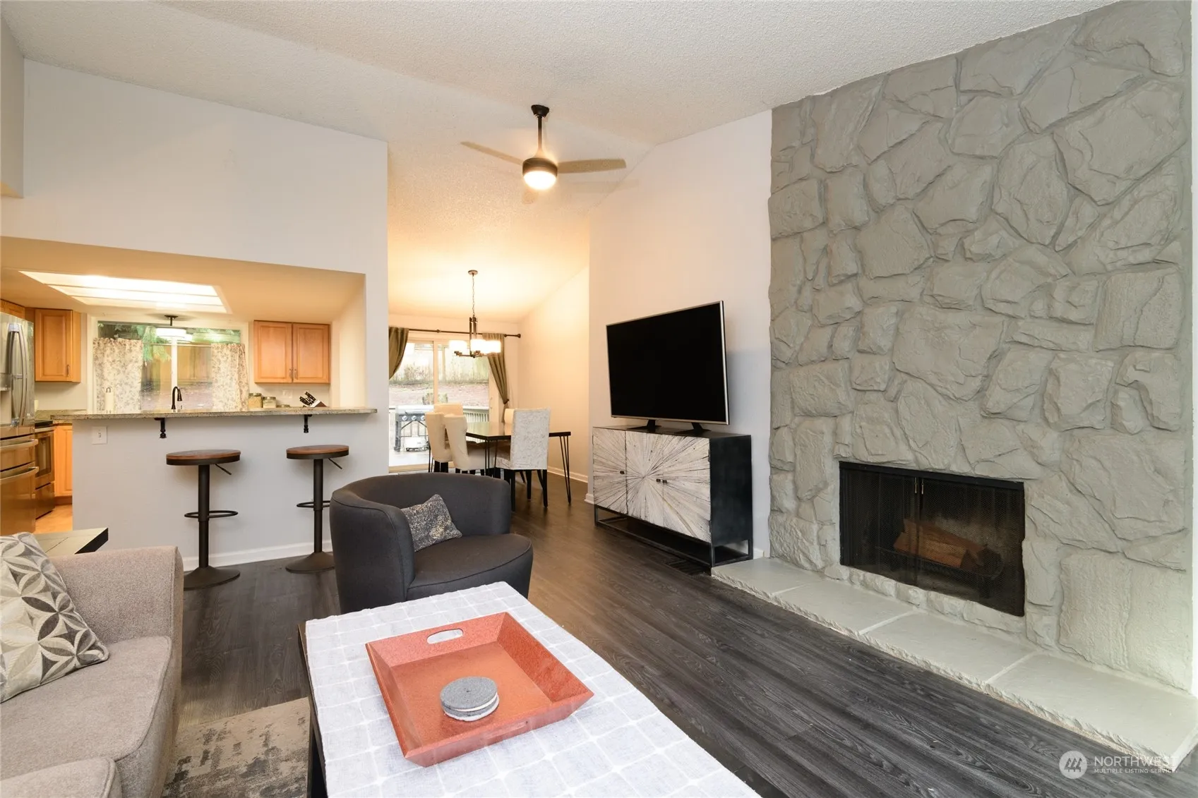 **SW Edgewood Location – No HOA!** This NW Contemporary home perfectly combines accessibility with privacy. Featuring a unique mid-entry style, it boasts vaulted ceilings and an open-concept kitchen, dining, and living space. Two spacious living areas, with fireplaces. The kitchen includes granite countertops and breakfast bar, while the dining room opens to a private deck and yard. The bathrooms also feature granite finishes. Primary bedroom with bathroom, complete with a vanity and a walk-in closet. 2nd living space downstairs provides ample space, as well as a den/office space! This house is designed for both privacy and entertaining. Abundant outdoor parking, and oversized 2-car garage with plenty of workshop space.