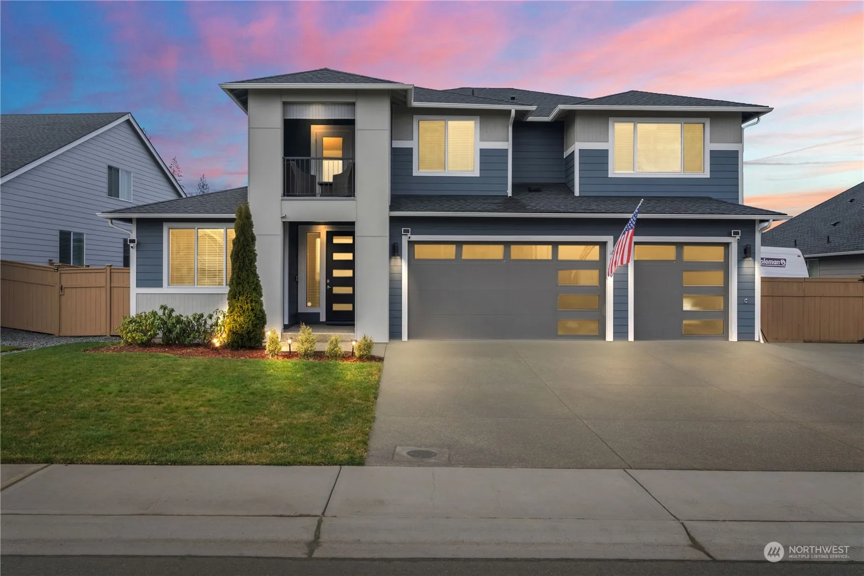 Power-packed & ready for anything! This modern 3,372 SF home features a solar system, full-house Generac generator, smart home tech, & RV parking—the ultimate blend of convenience & efficiency! Enjoy 20-ft soaring ceilings in the great room, creating a bright & spacious feel opening up to the kitchen, featuring an oversized island, SS appliances, & a butler’s pantry—perfect for entertaining. The main floor offers a primary suite & a guest suite, ideal for multi-generational living. Upstairs, enjoy 3 additional bedrooms, all w/ walk-in-closets, a bonus room w/ private balcony, & Mt. Rainier views. Conveniently near HWYs 410/167, just 10 minutes to groceries & amenities, & a quick drive south of Seattle. $5K SELLER CREDIT w/ Preferred Lender!